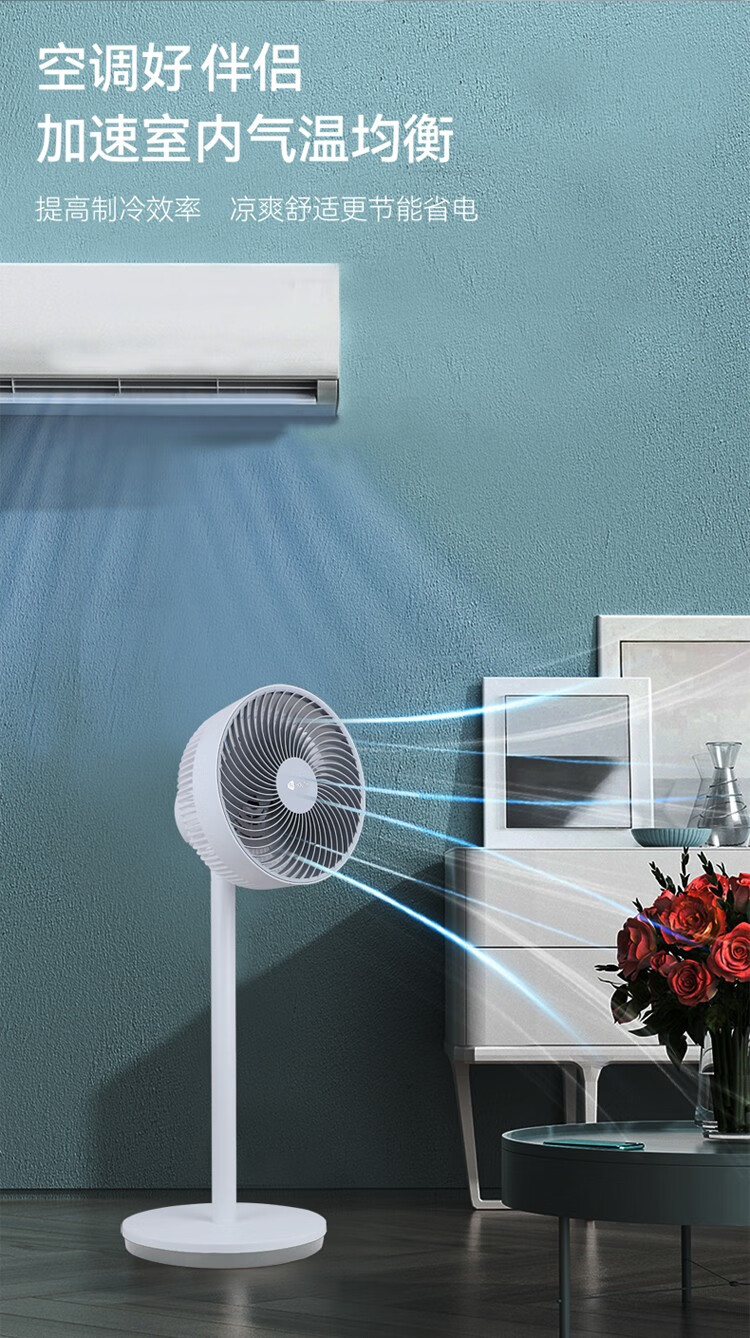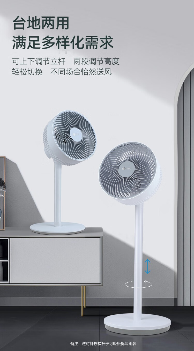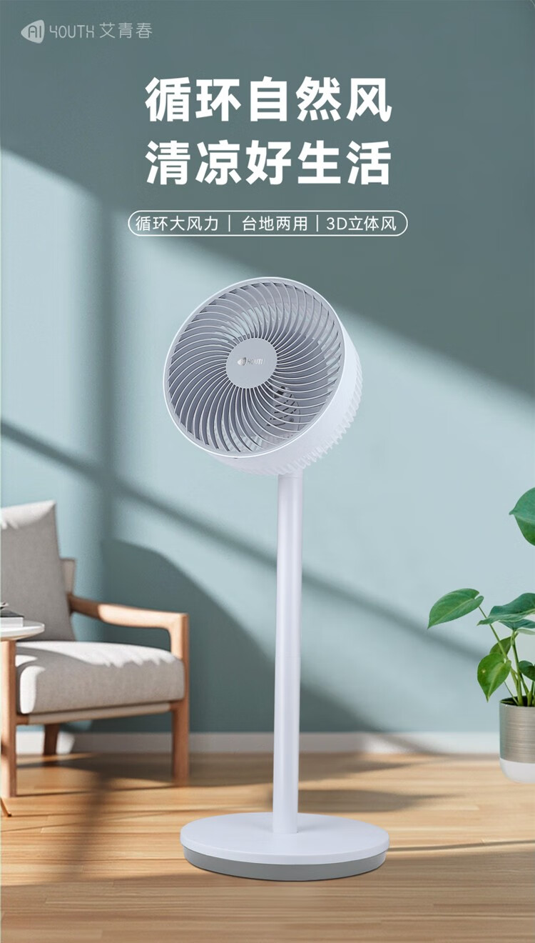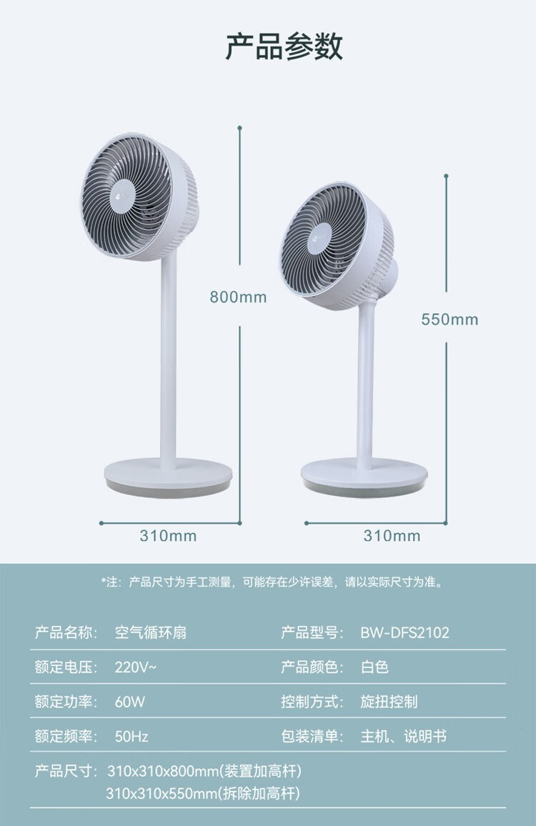艾青春空气循环扇家用电风扇直流低噪台地两用式摇头落地扇BW-DFS2102 白色