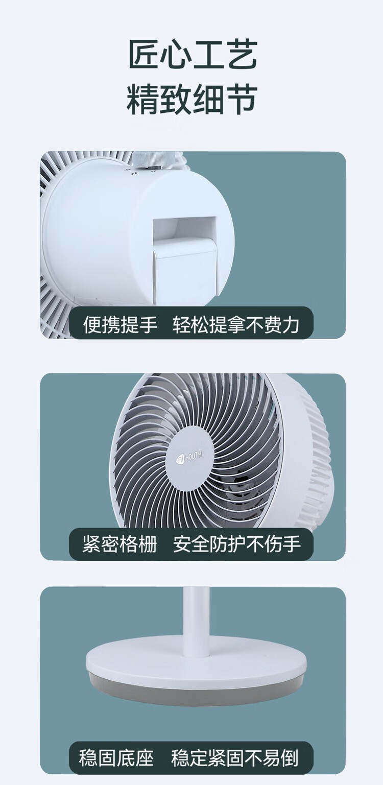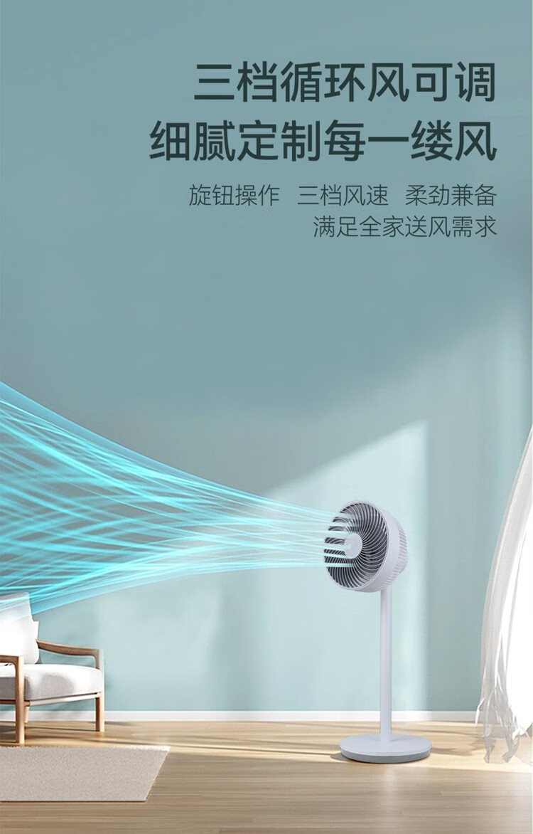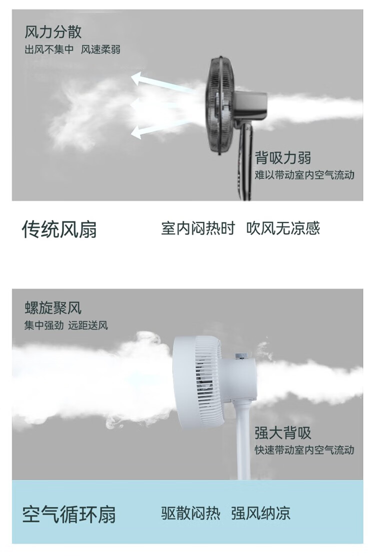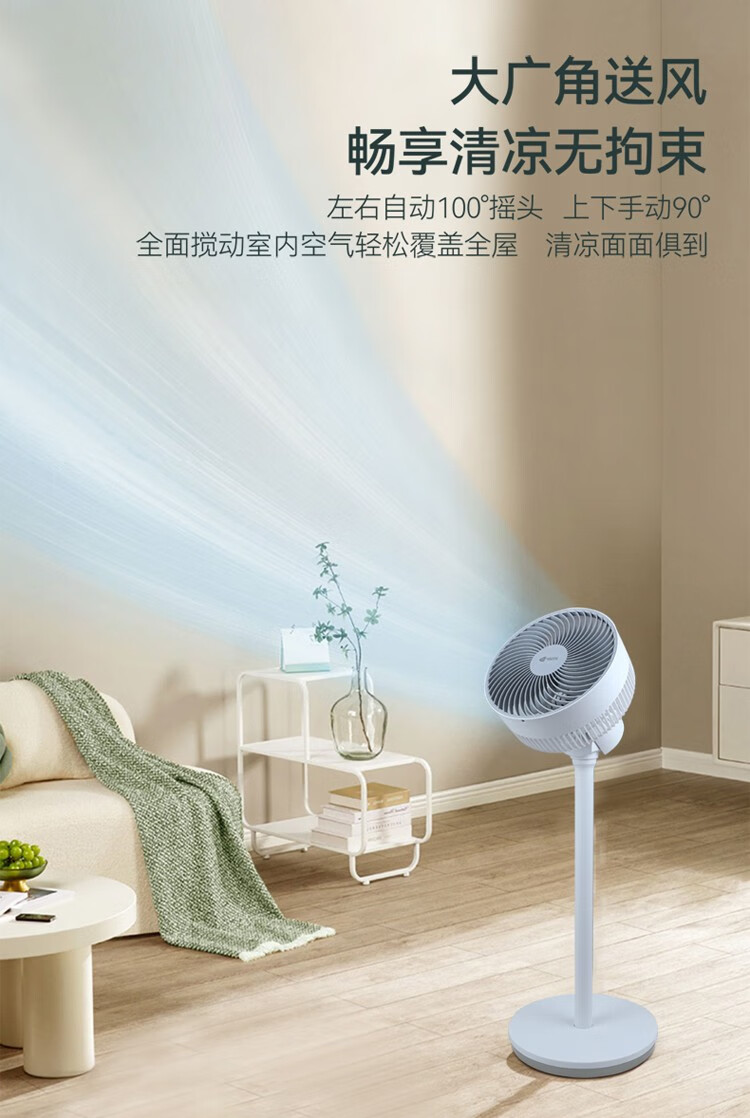 艾青春空气循环扇家用电风扇直流低噪台地两用式摇头落地扇BW-DFS2102 白色