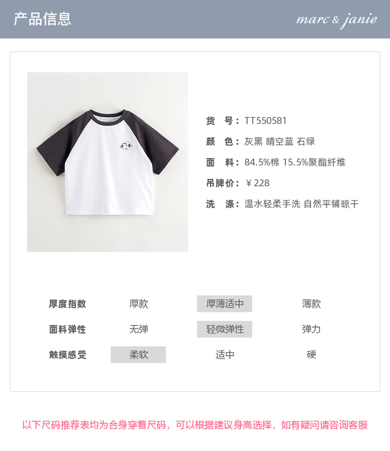 【凉感】马克珍妮男女童山系户外短袖T恤 儿童上衣夏装新款550581