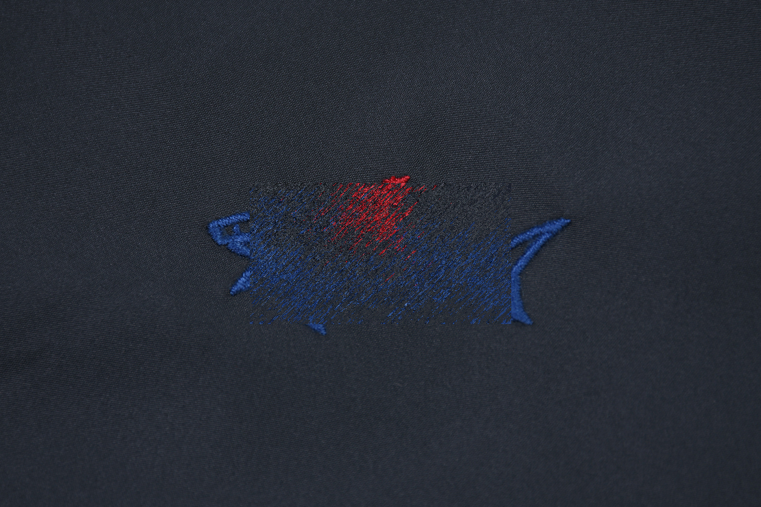 鲨鱼 胸前刺绣小标,左臂刺绣小方标。做工细致,细节处很精致了。