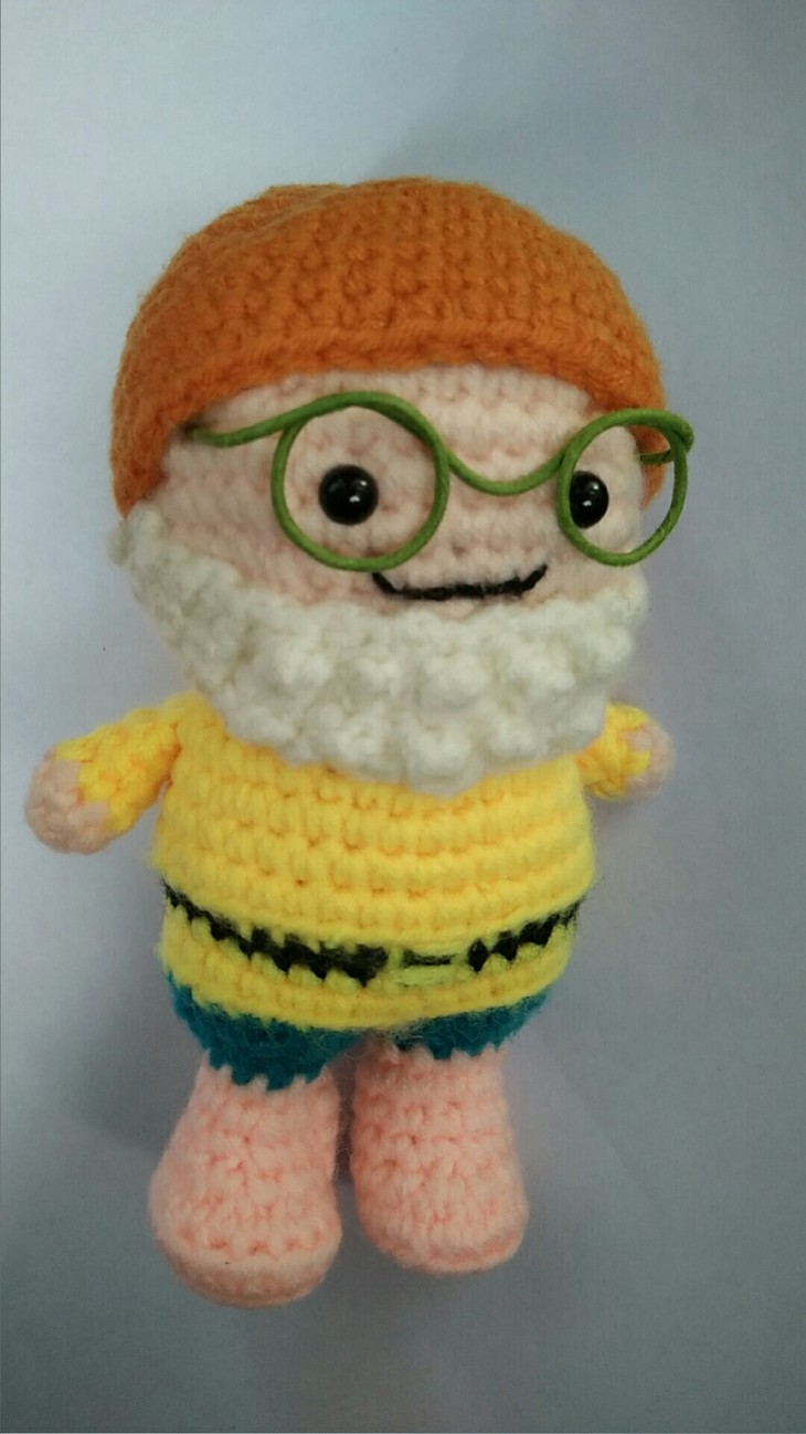 听障者用钩针和绒线按照小矮人样子制作的。