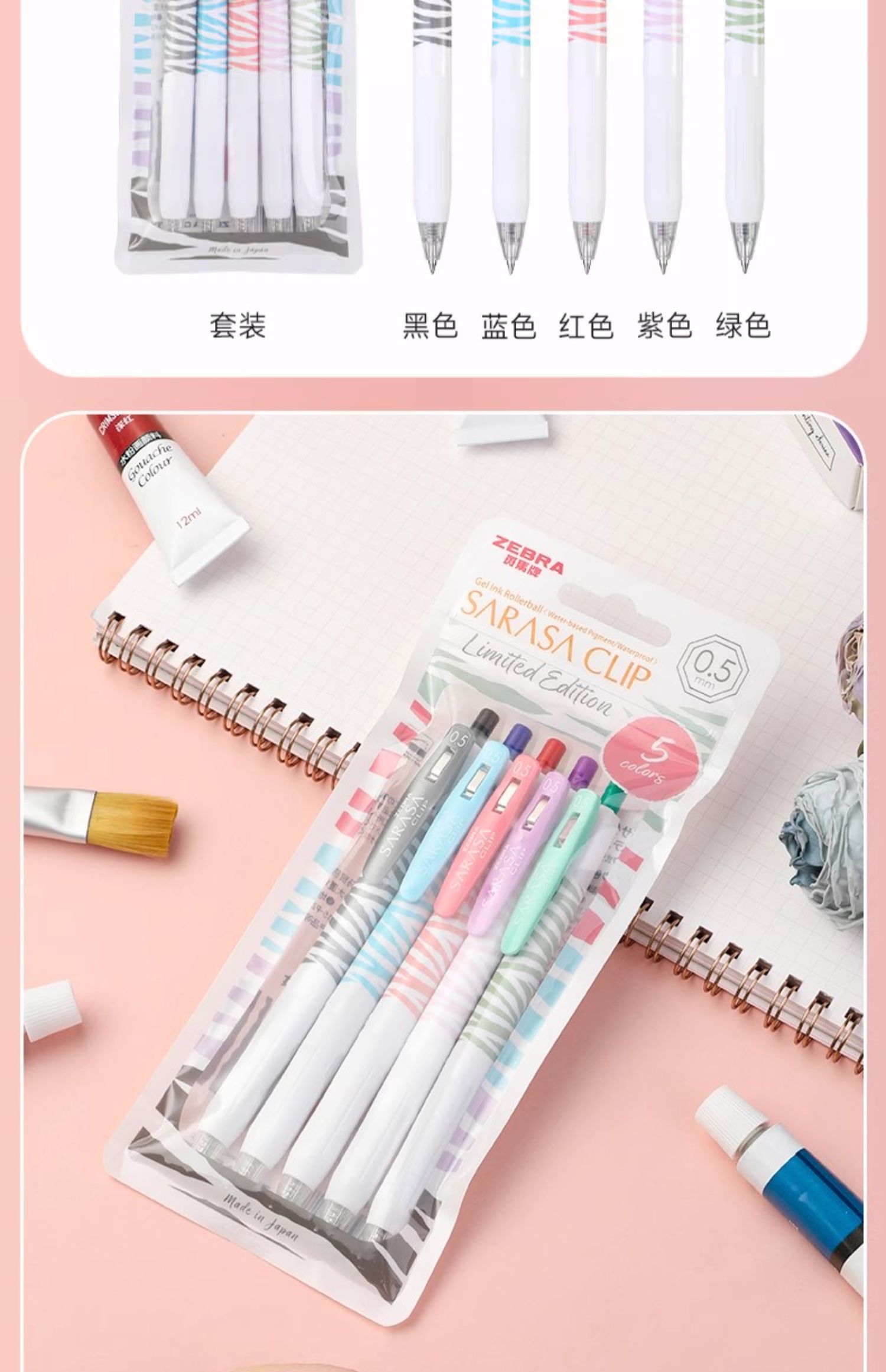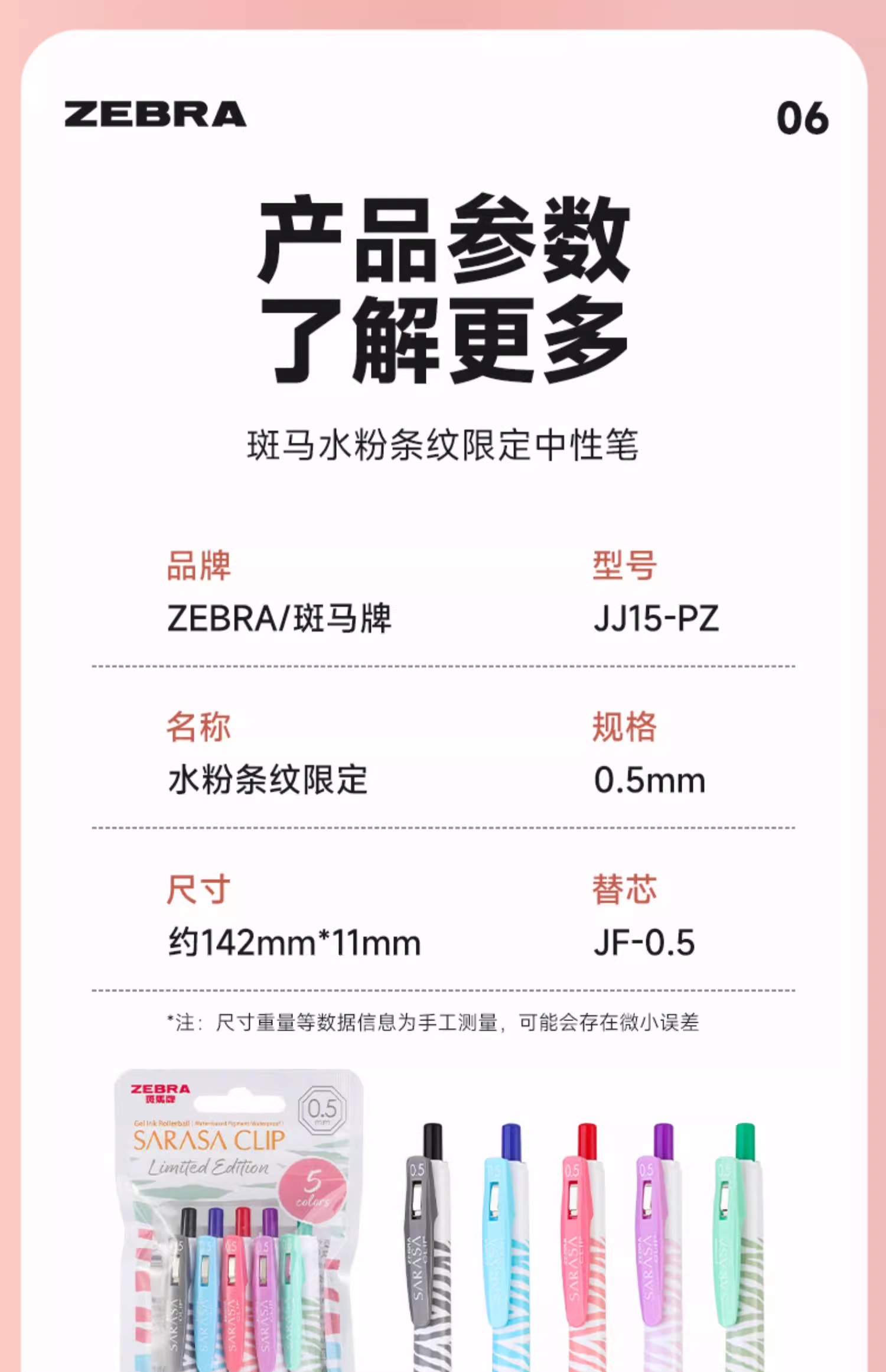 斑马中性笔水粉条纹限定款JJ15