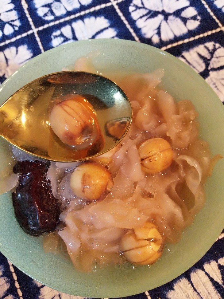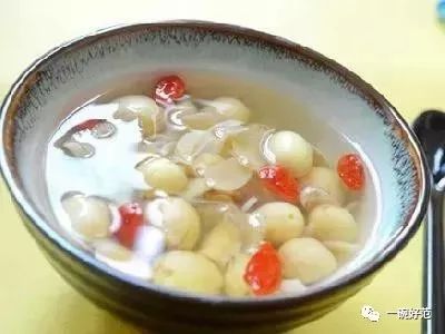 做法:将银耳泡开,择净,加清水适量,下莲子炖至烂熟后,入枸杞、冰糖,炖沸即可,每日1次。
