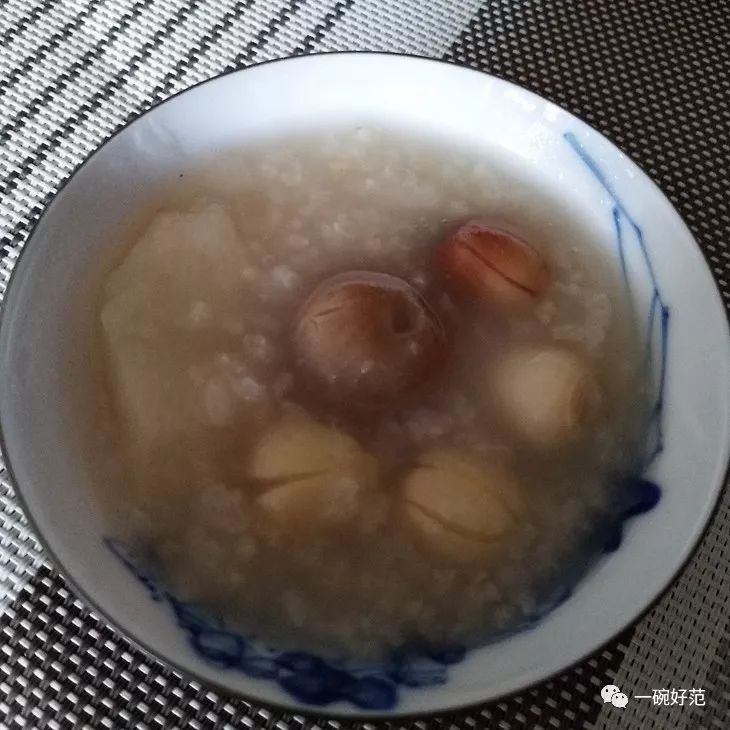 做法:将糯米洗净,放入沙锅内,加水。将莲子和怀山药洗净,同米共煮。煮熟后,加冰糖调味食用。