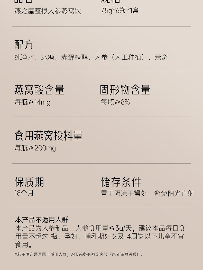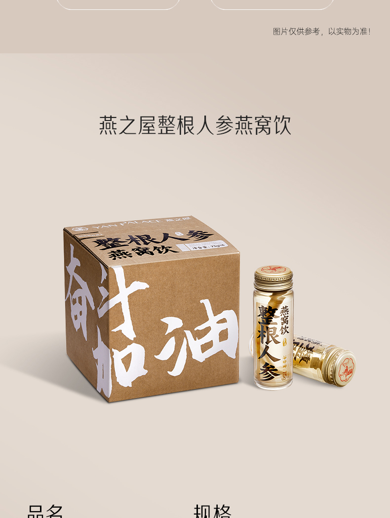 【周末放“价”】燕之屋整根人参燕窝饮75g*6瓶*4盒 |燕窝阿胶当归口服液15m*24瓶*3盒【每个ID限5份】