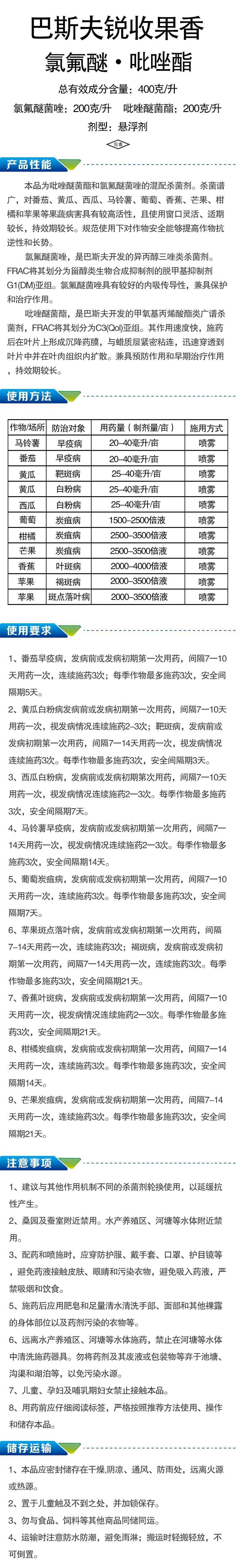 德国巴斯夫 锐收果香 防治葡萄霜霉病、炭疽病、黑痘病、褐斑病