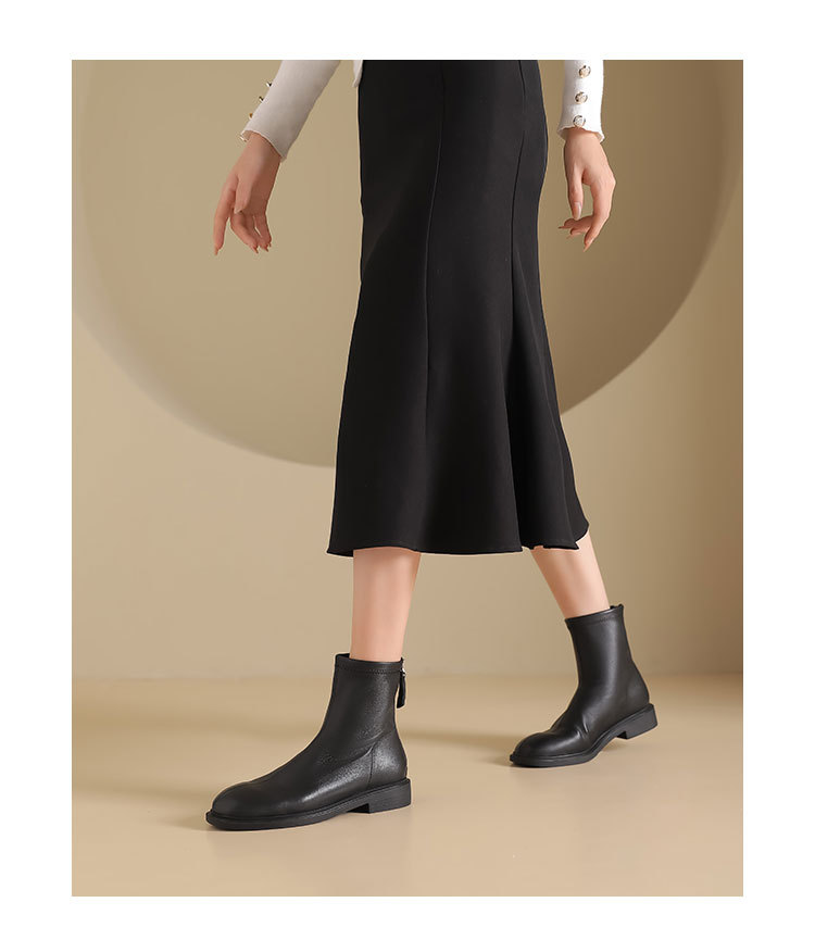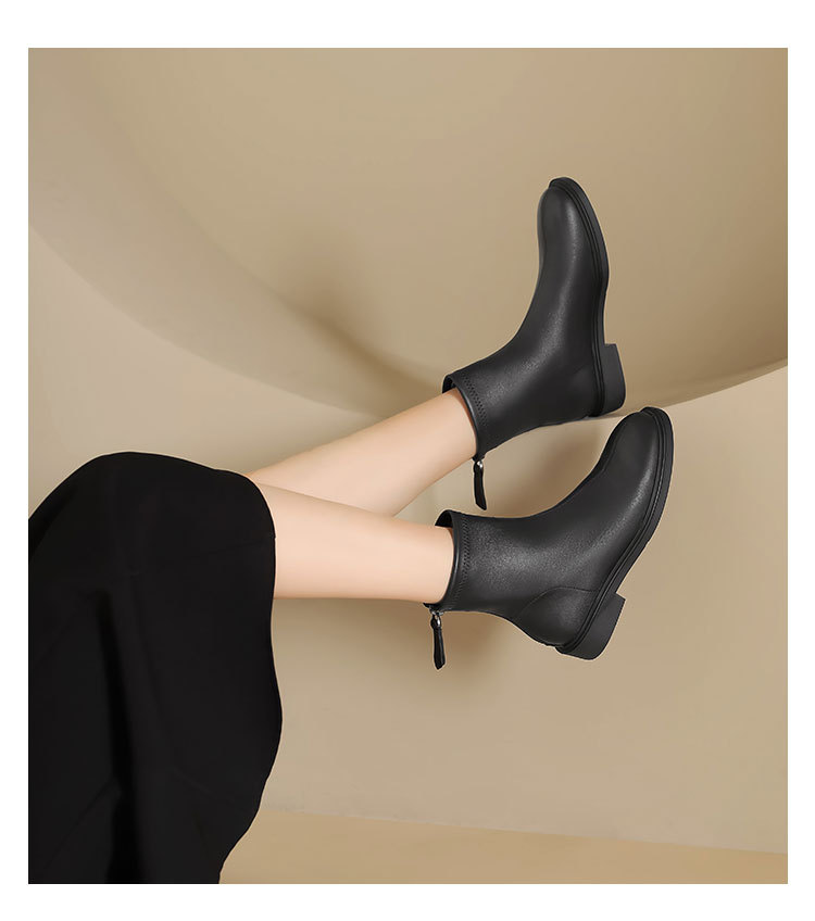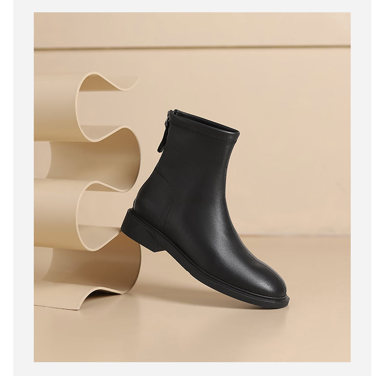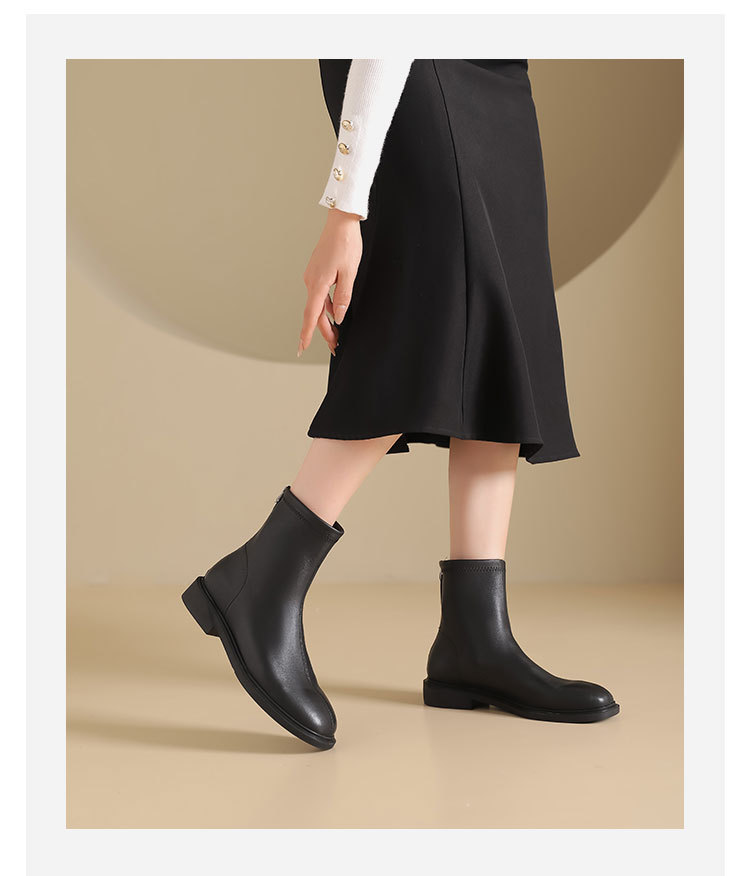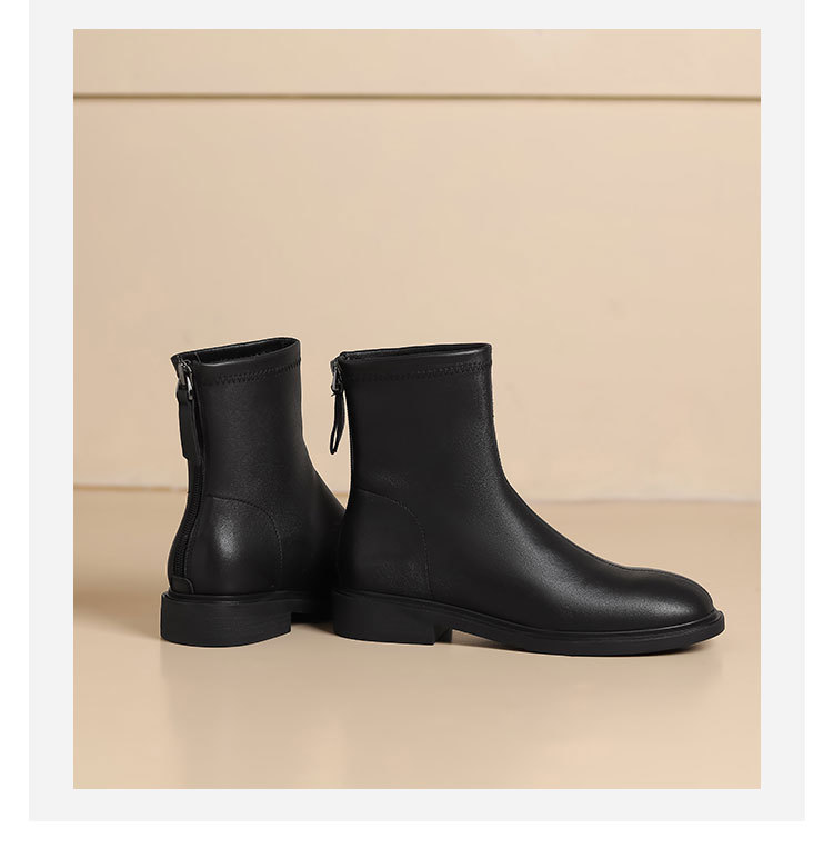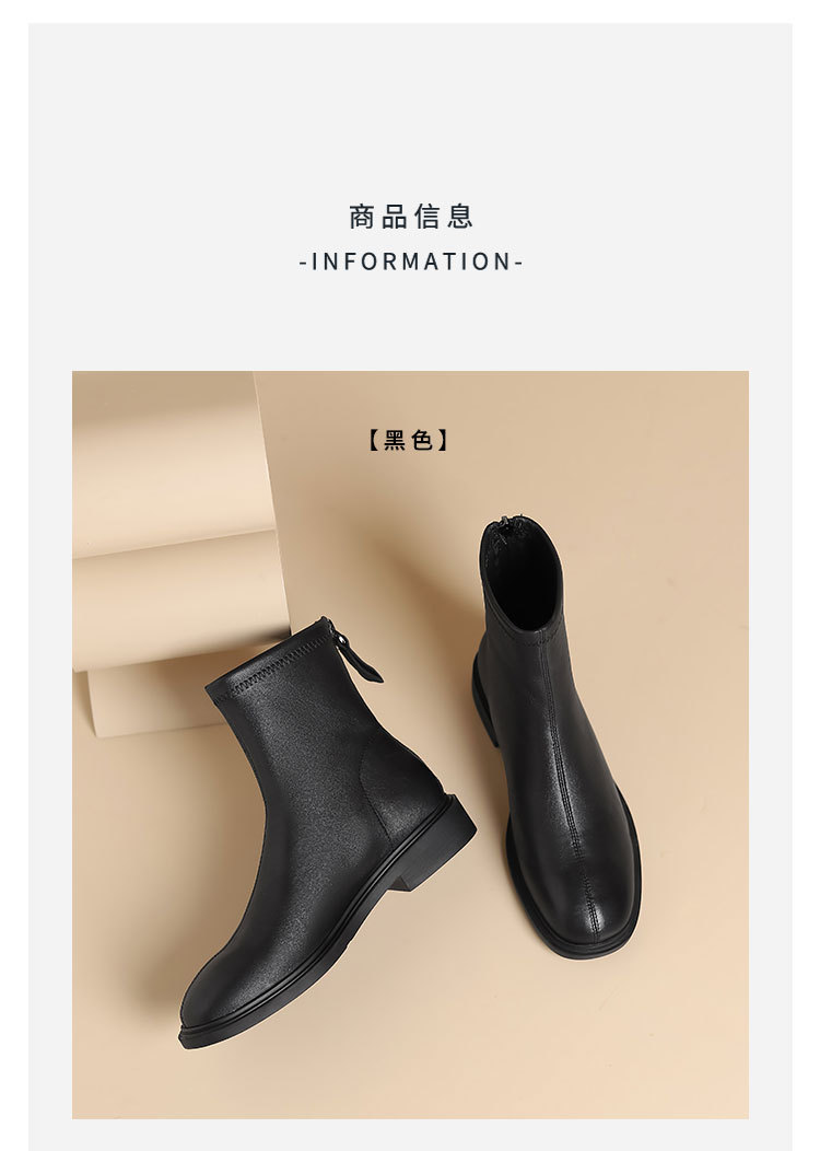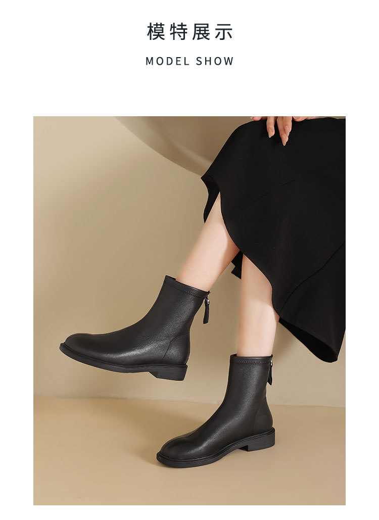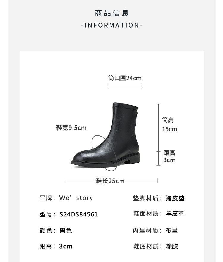 westory2024年秋冬新款优雅风平底粗跟百搭短靴切尔西S24DS84561