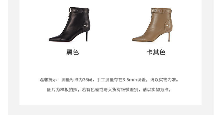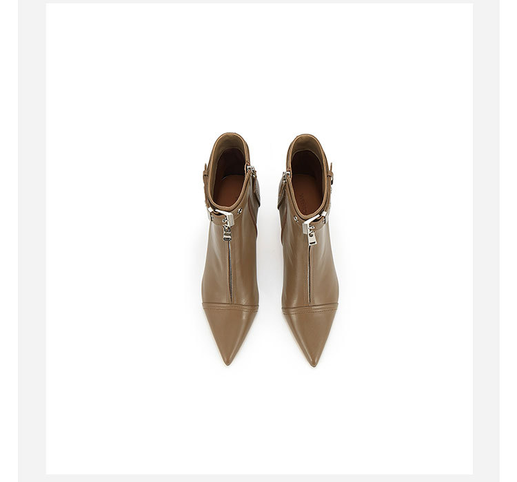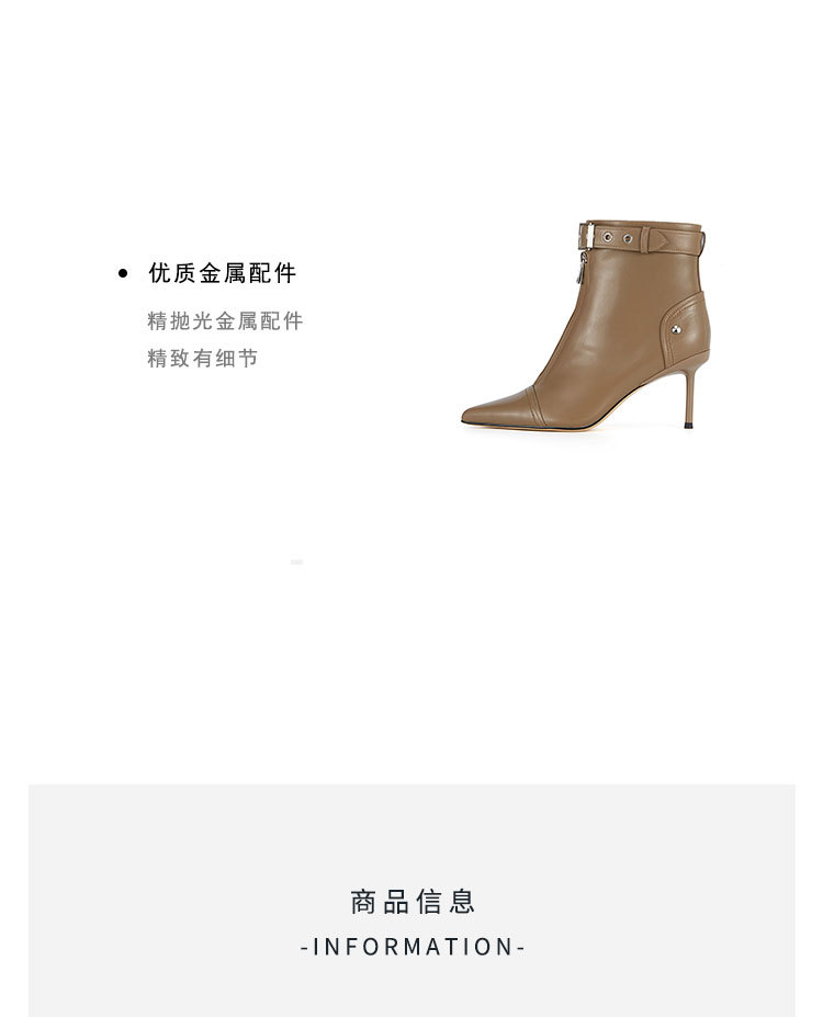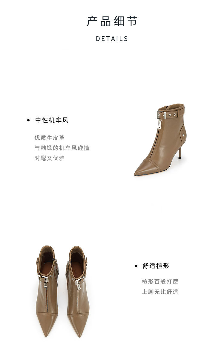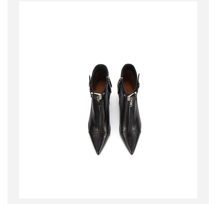 westory冬季全皮光面飒爽细高跟尖头时装百搭短靴女W23DS83231