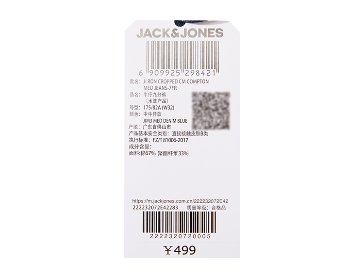 JackJones杰克琼斯男潮流高街简约基础百搭凉爽coolmax面料牛仔裤222232072 E42中牛仔蓝