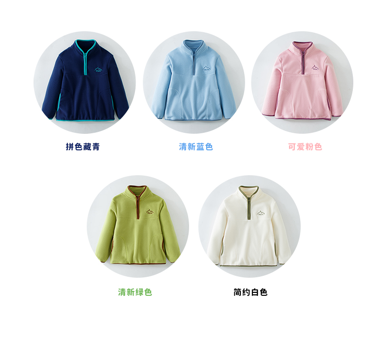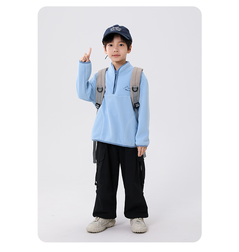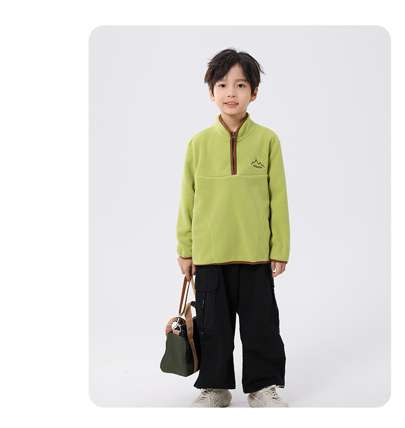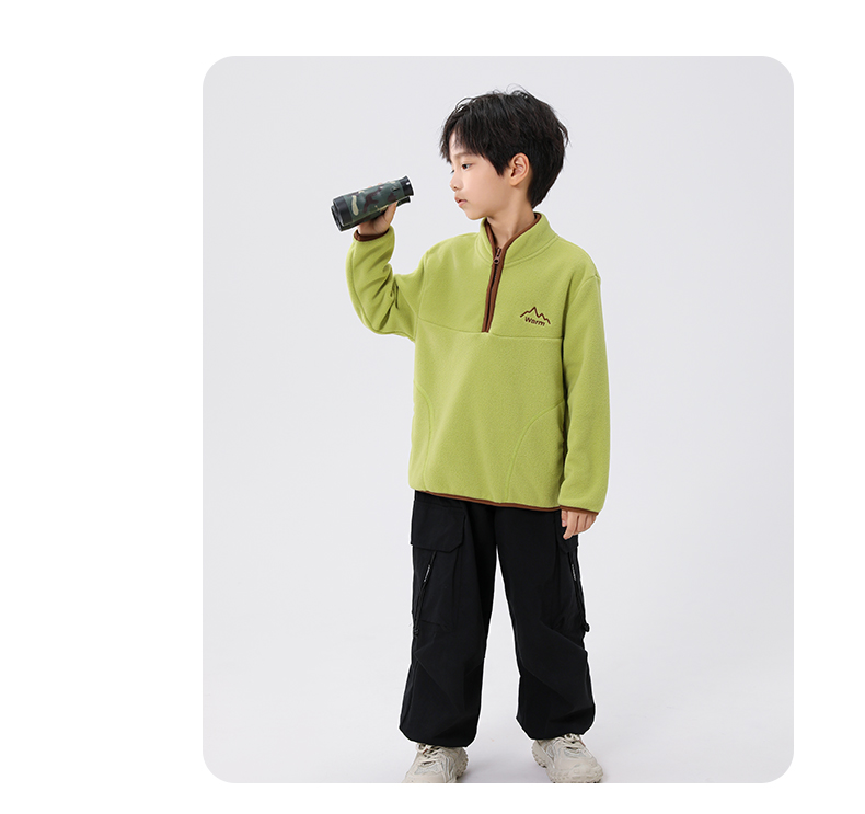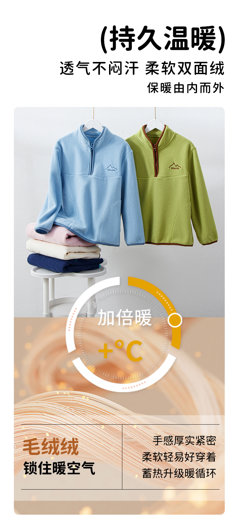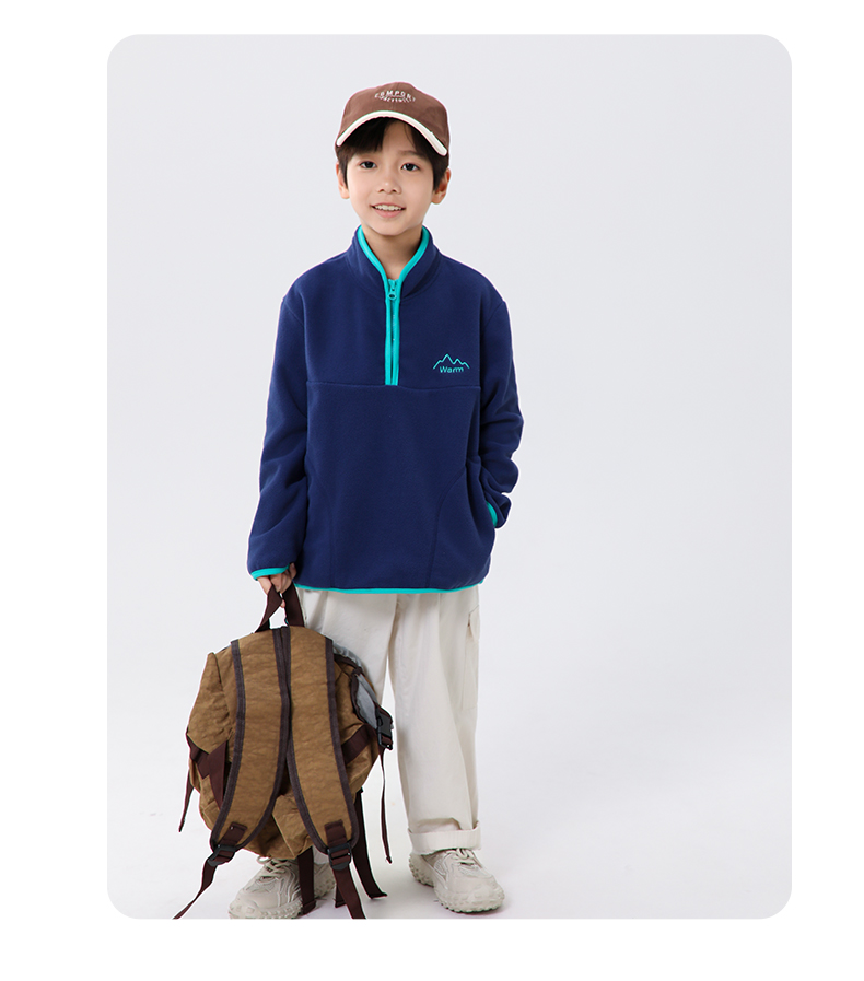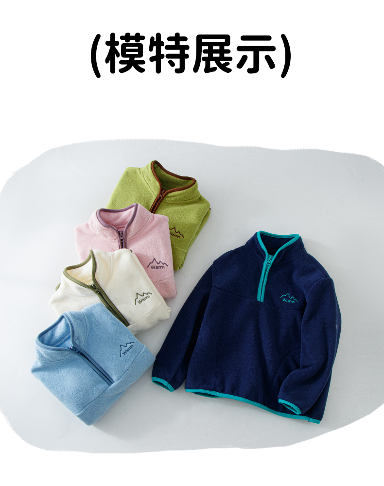 *【A类品质,聚热保暖】儿童秋冬新款五色摇粒绒套头卫衣半拉链卫衣中大童保暖加绒立领上衣100%