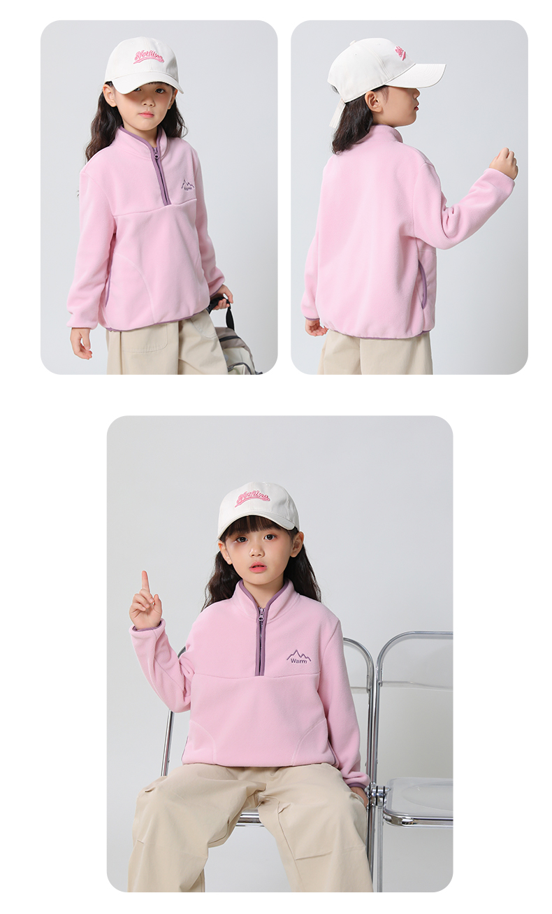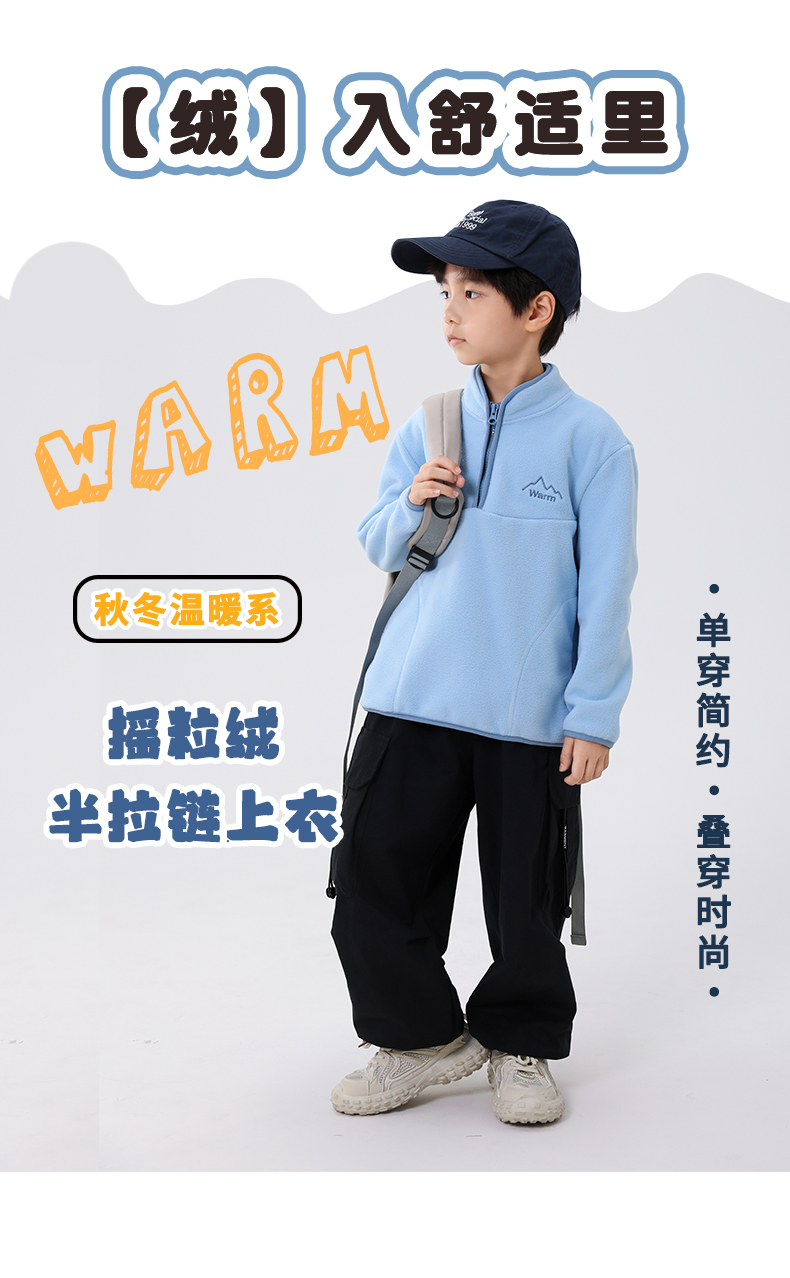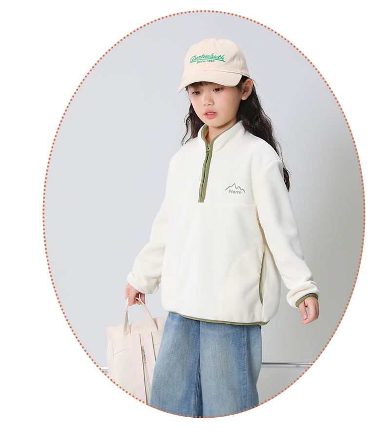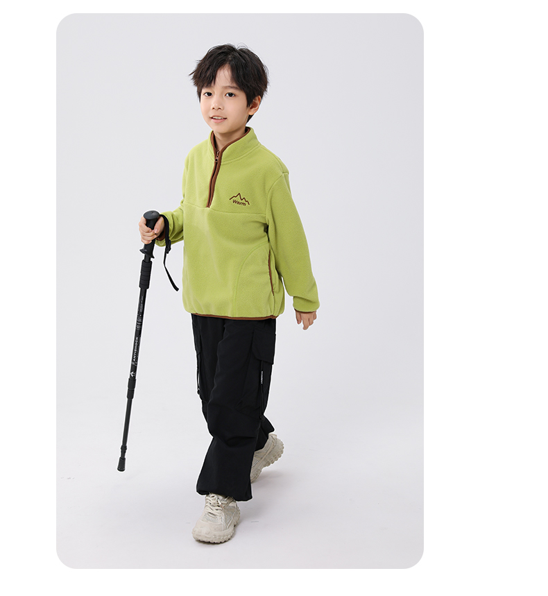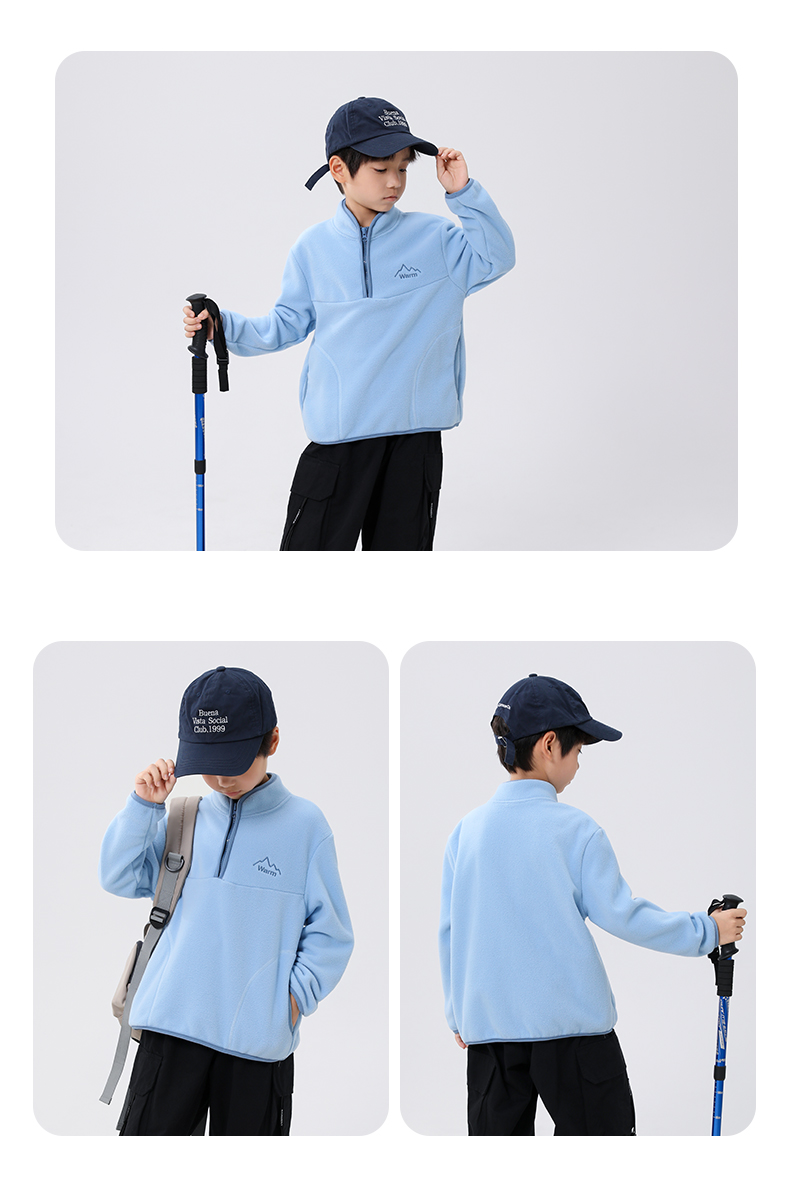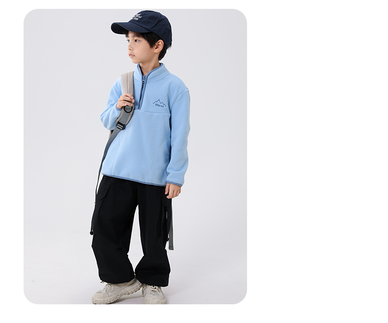 *【A类品质,聚热保暖】儿童秋冬新款五色摇粒绒套头卫衣半拉链卫衣中大童保暖加绒立领上衣100%