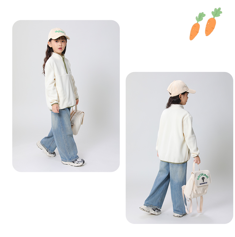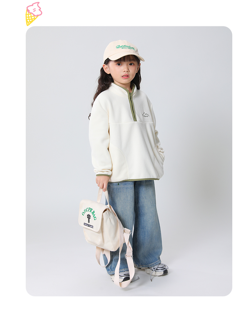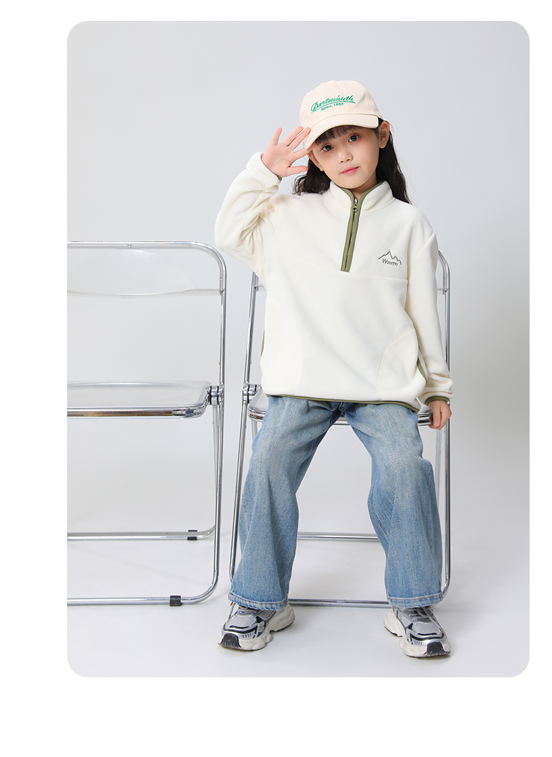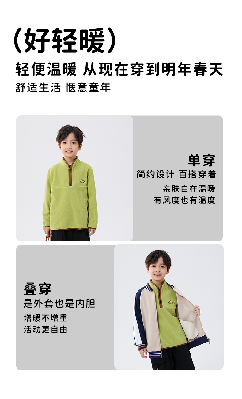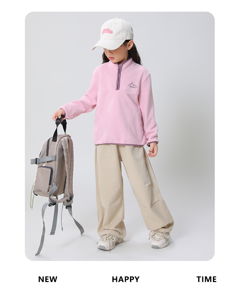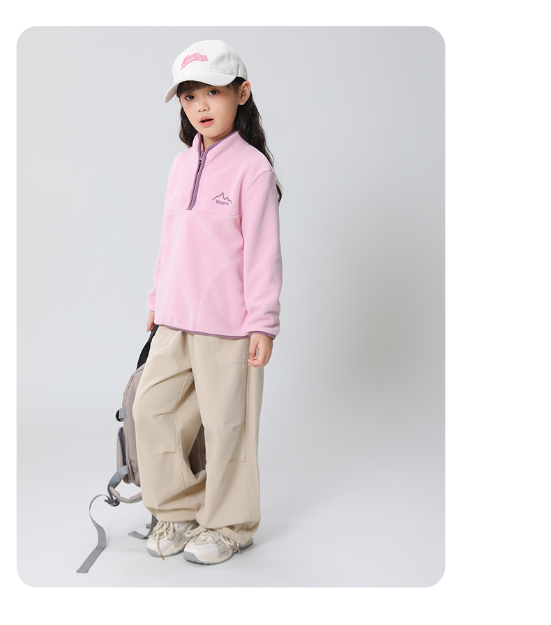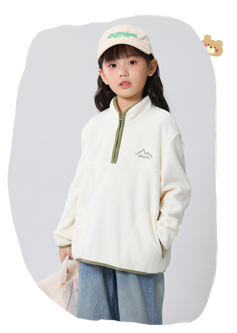 *【A类品质,聚热保暖】儿童秋冬新款五色摇粒绒套头卫衣半拉链卫衣中大童保暖加绒立领上衣100%