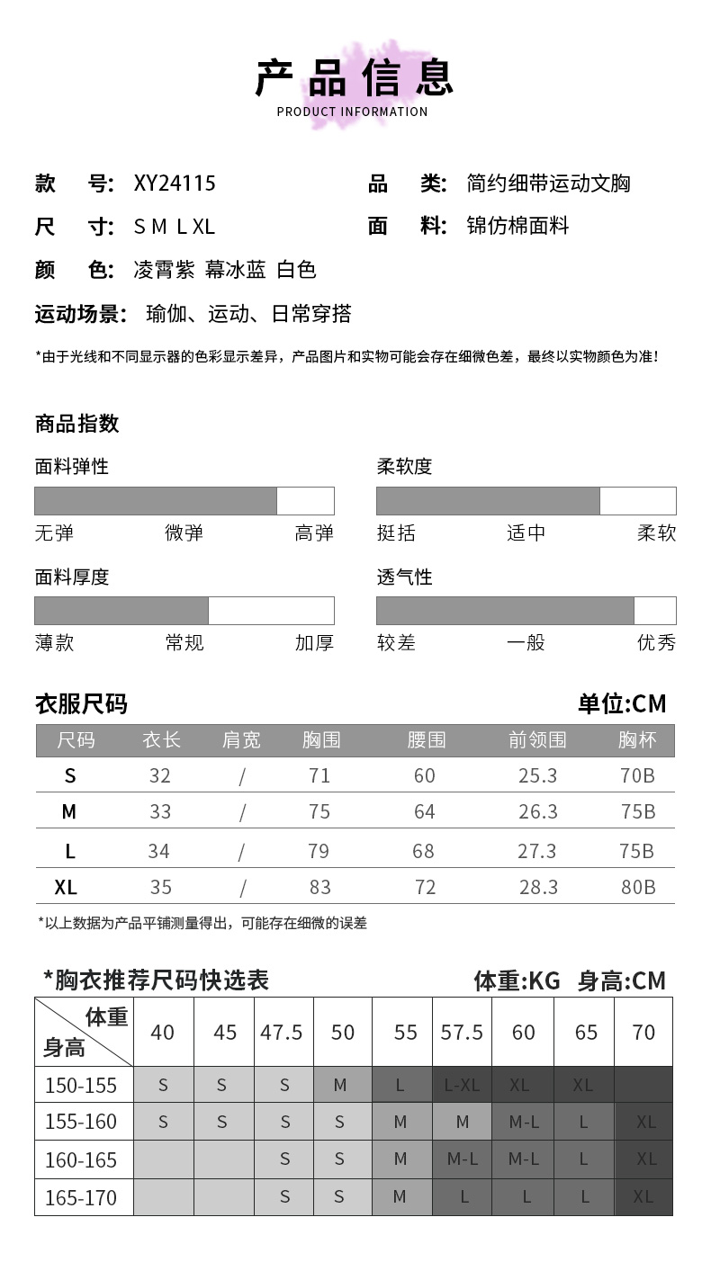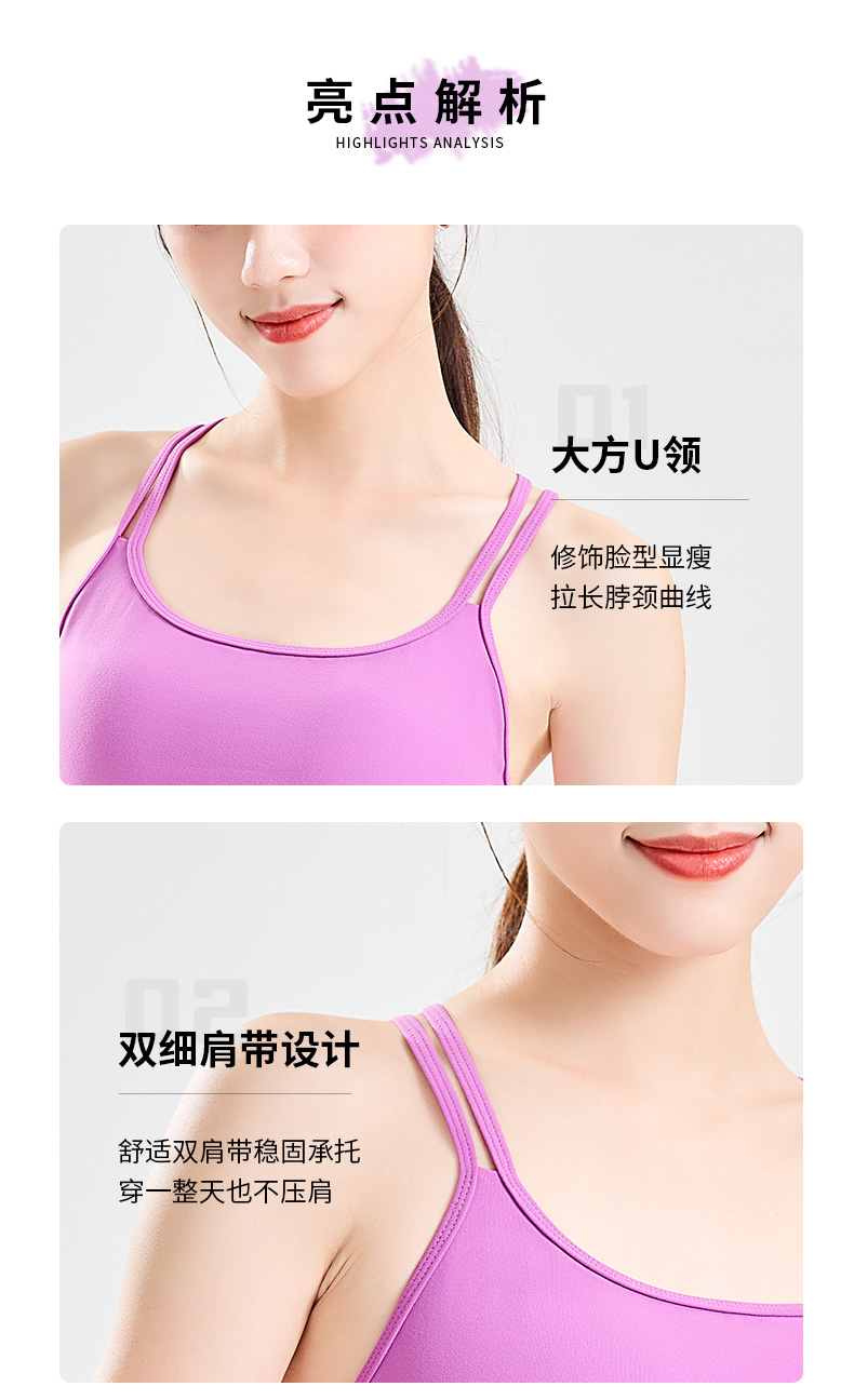悠妍专业U领瑜伽内衣XY24115 简约细肩带运动内衣一体杯bra