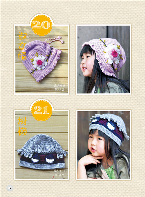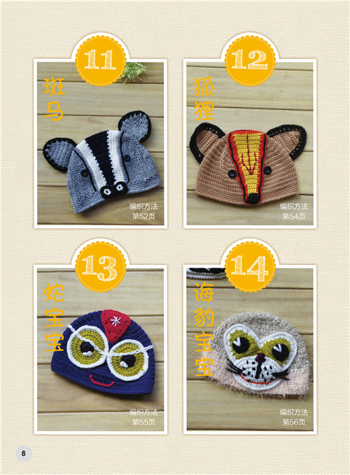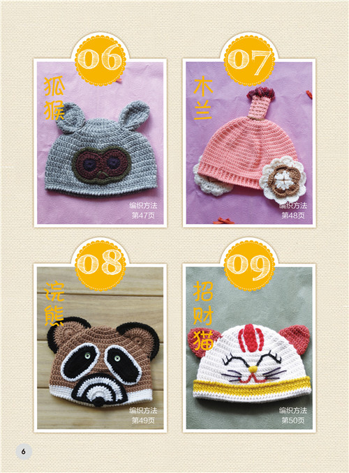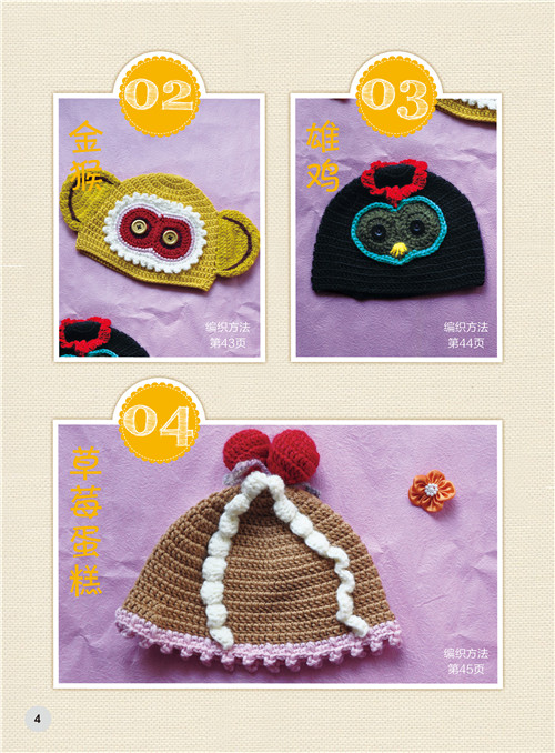 小动物毛线帽 钩针编织花样款式大全 70款可爱小动物帽子水果帽花朵毛线帽卡通人物帽编织针法技巧全图解