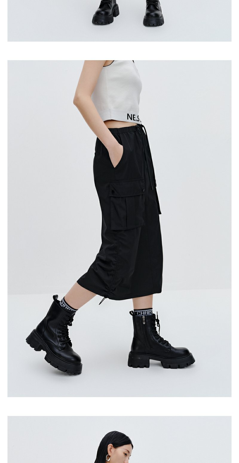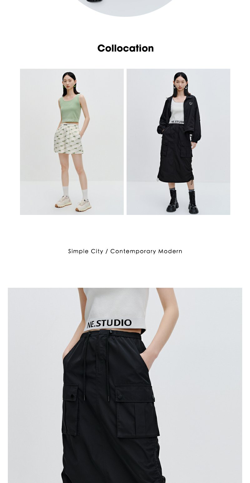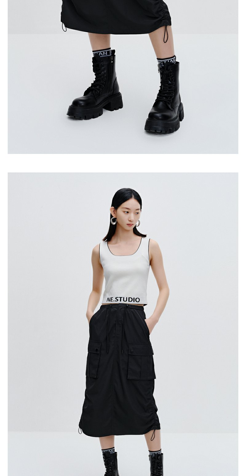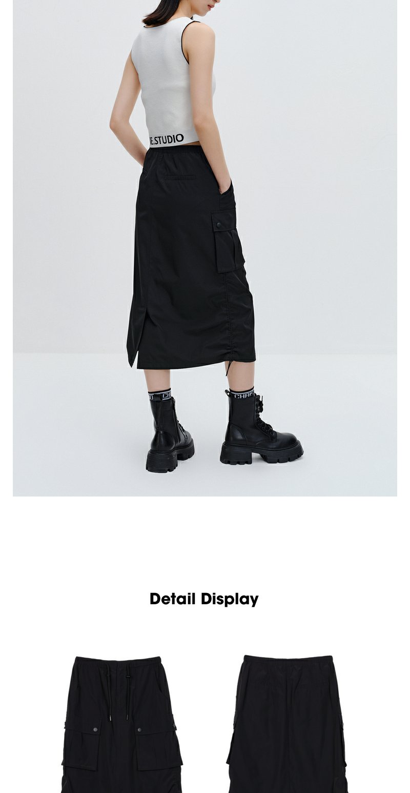 NEELLY纳俪商场同款工装半身裙女2023早秋新款黑色复古中长款半裙N23072E01051
