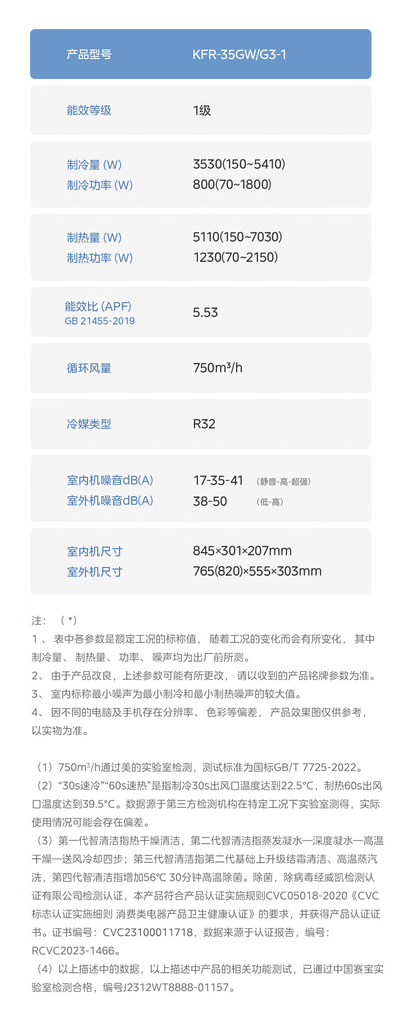 美的空调一级变频1.5P空调KFR-35GW/G3-1(仅限湖南省内)