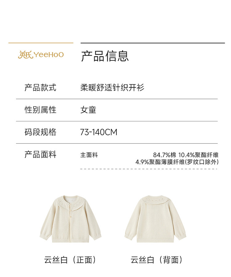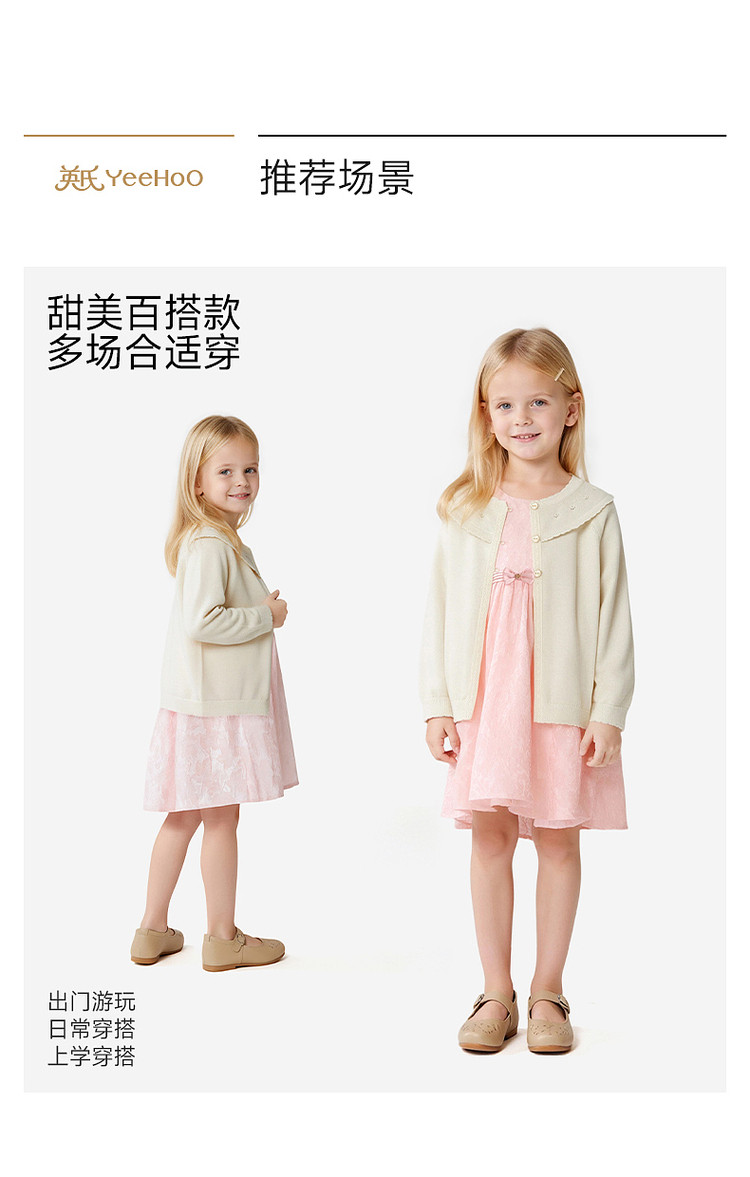 英氏童装女童针织开衫春秋薄外套新款女宝中小童上衣YRWWJ1S032A