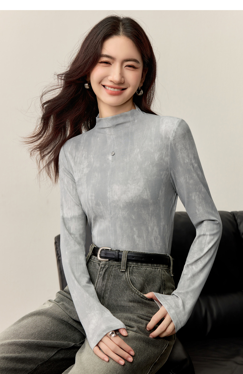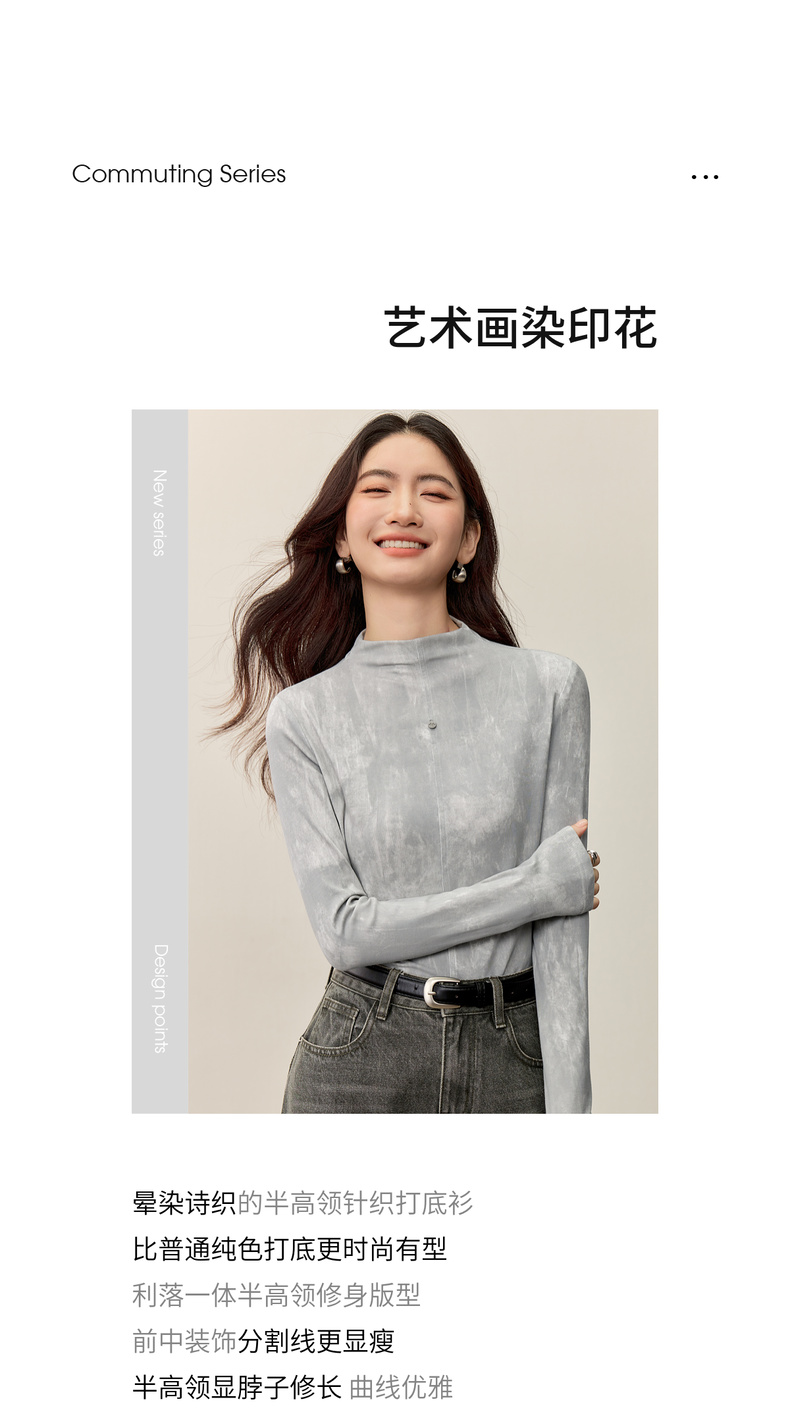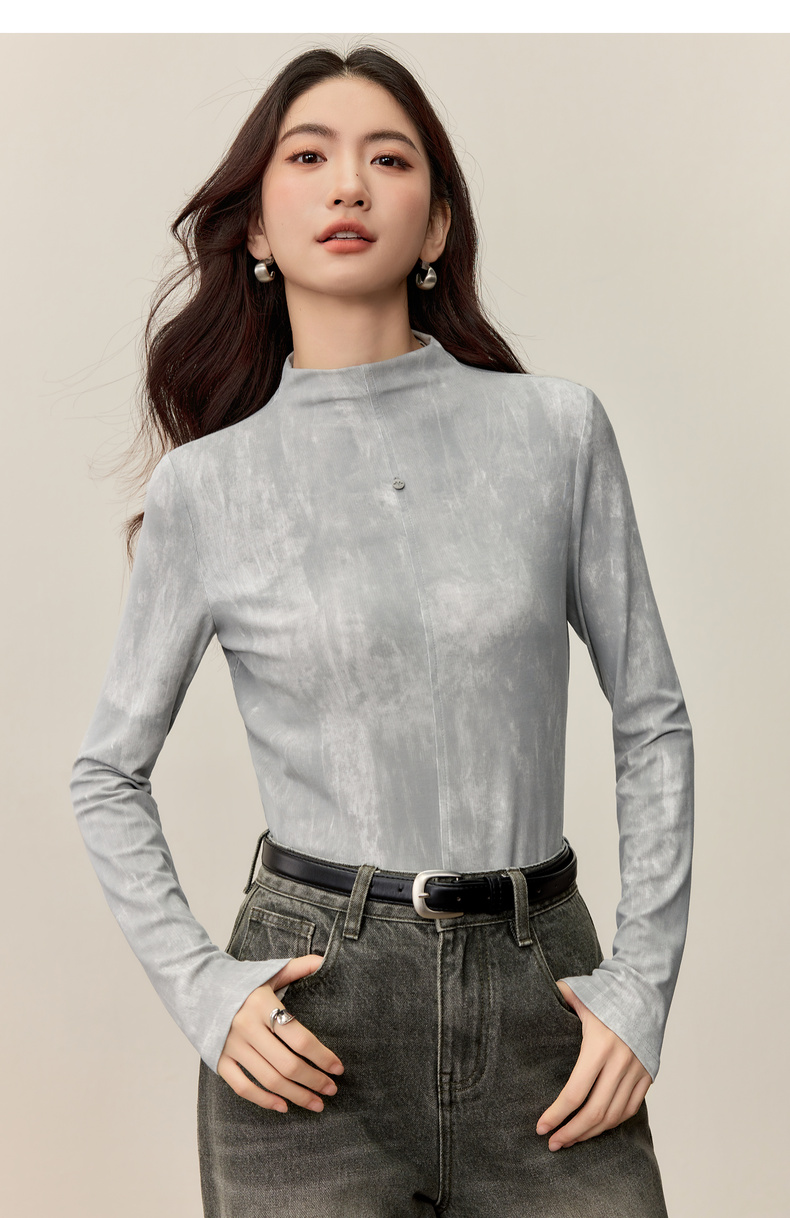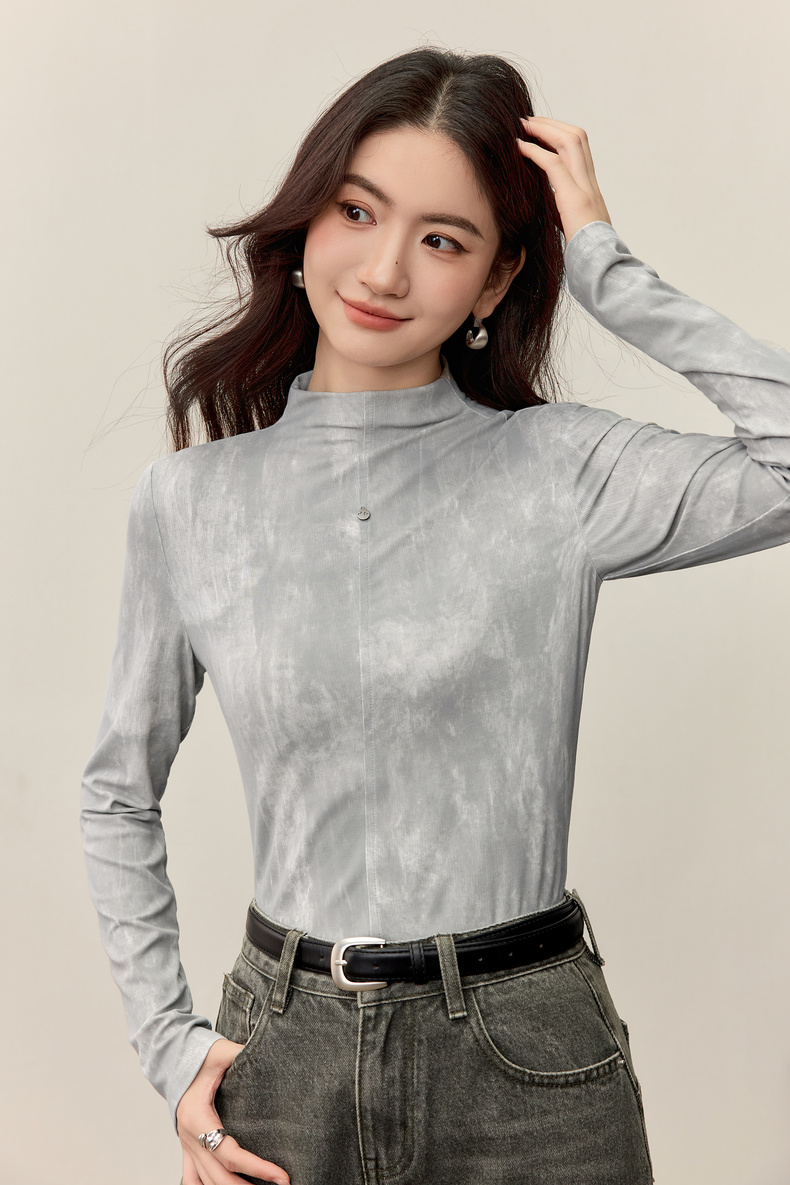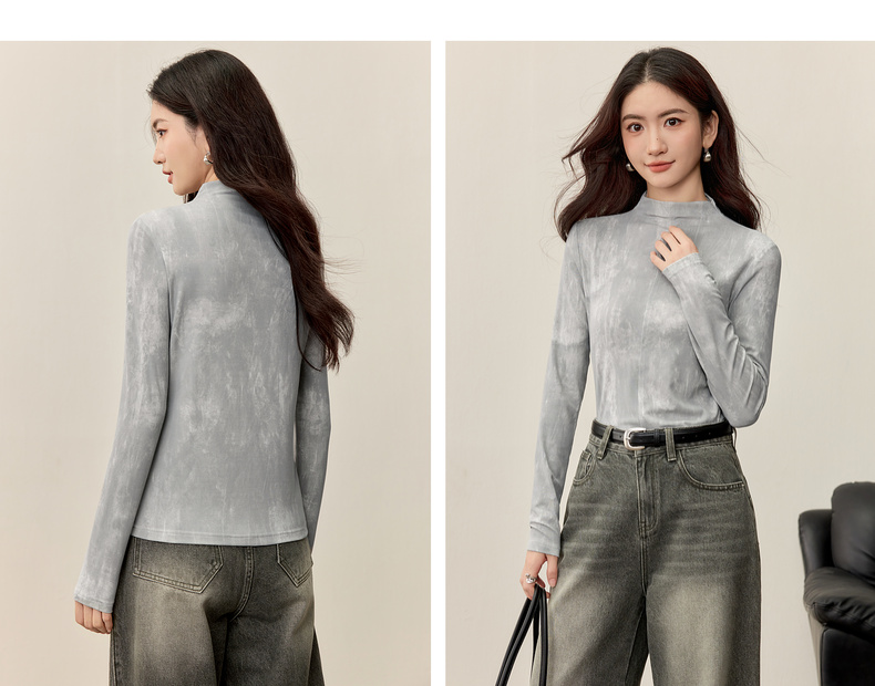 【内购】【晕染印花】基础半高领修身H型晕染印花打底衫-153SG2851