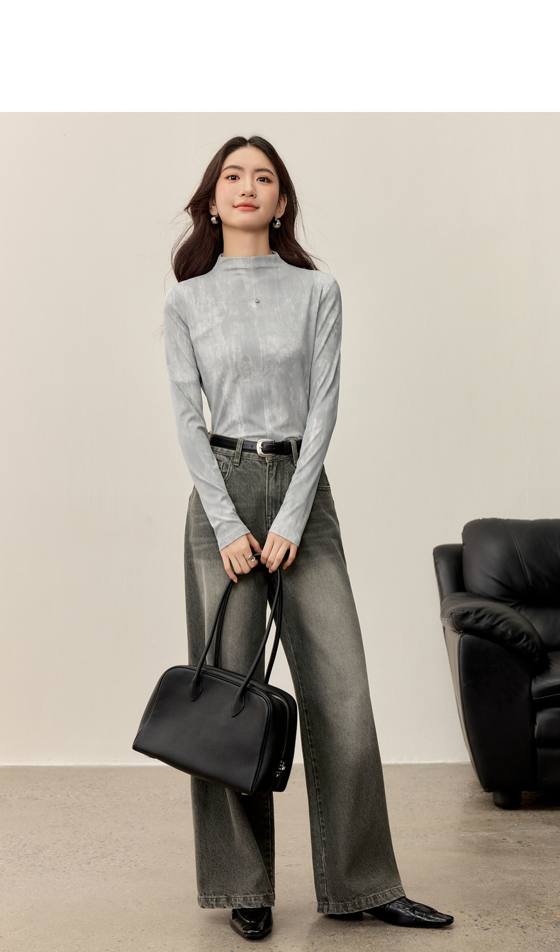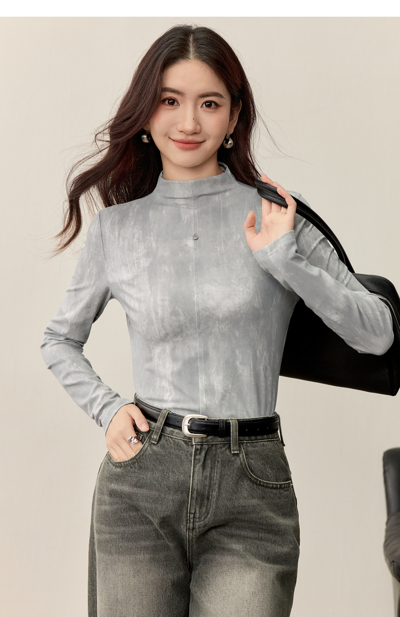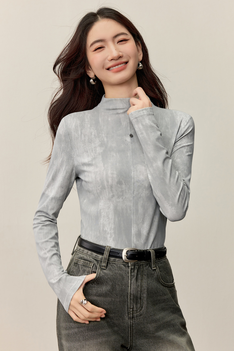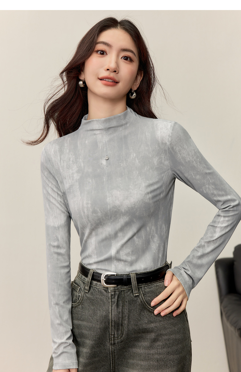 【内购】【晕染印花】基础半高领修身H型晕染印花打底衫-153SG2851