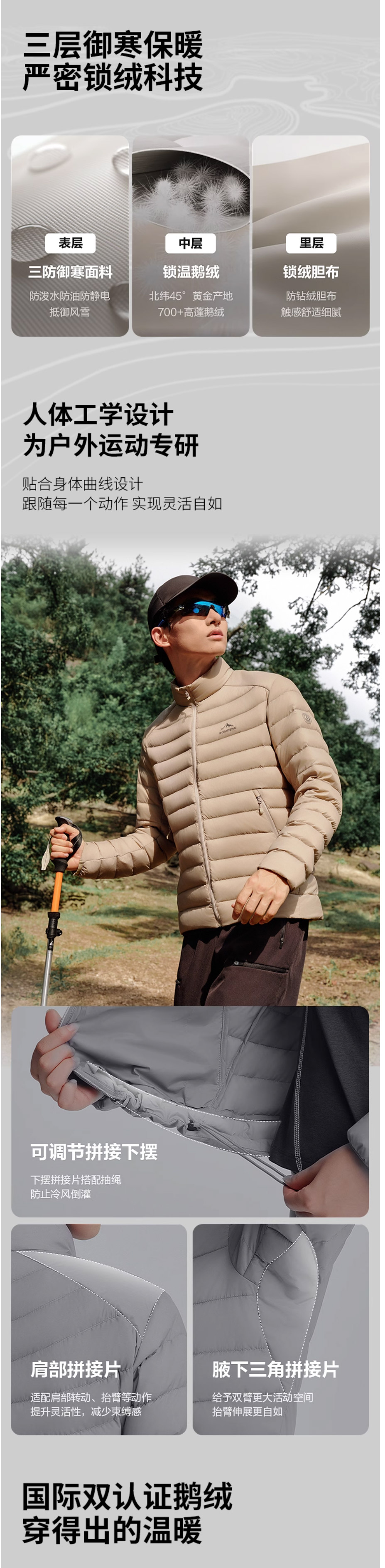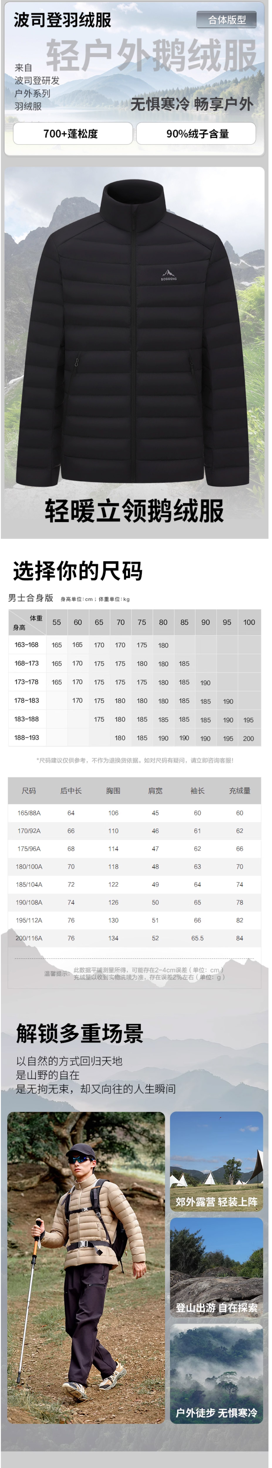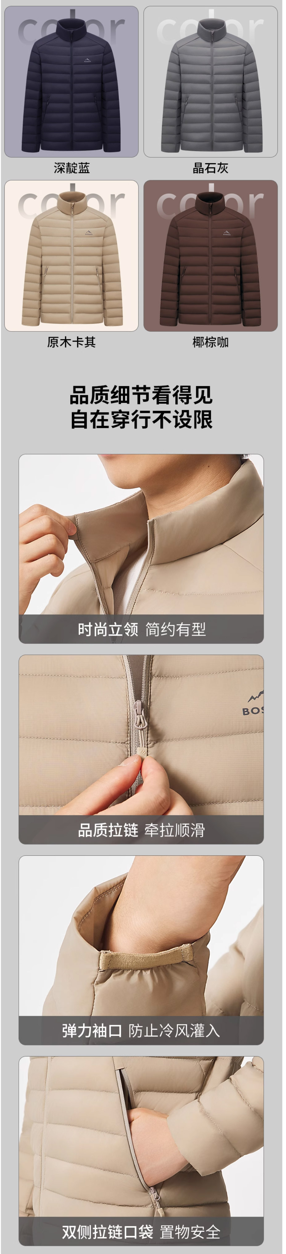 波司登2025秋新款男士短款修身立领轻薄鹅绒排骨羽绒服B250131037