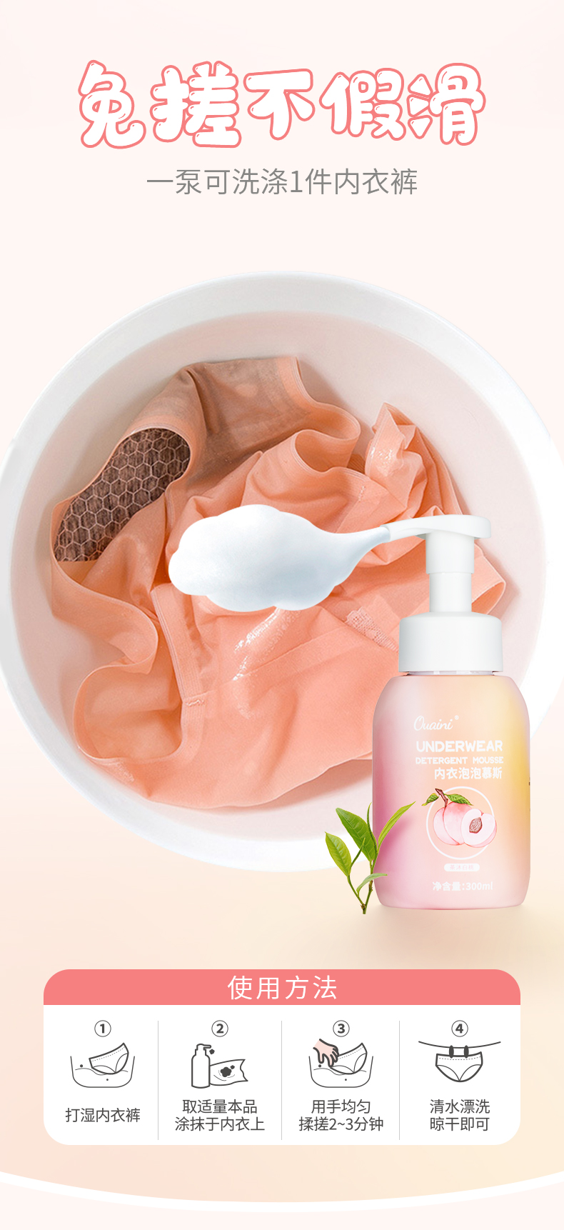 【2瓶】偶爱你内衣泡泡慕斯300ml*2瓶