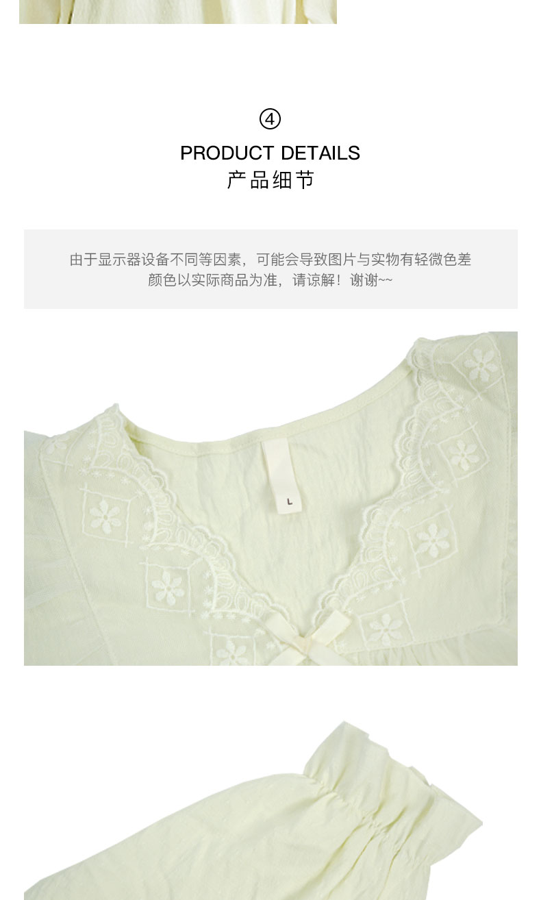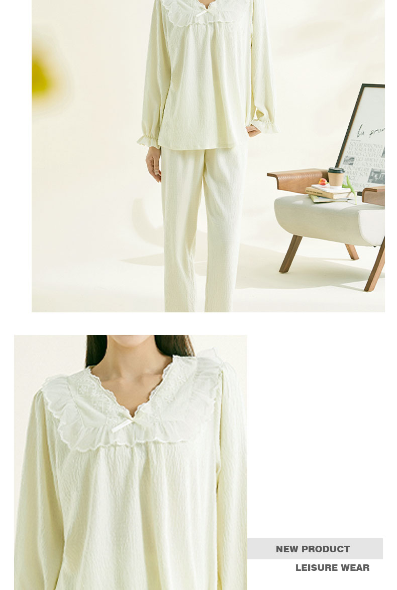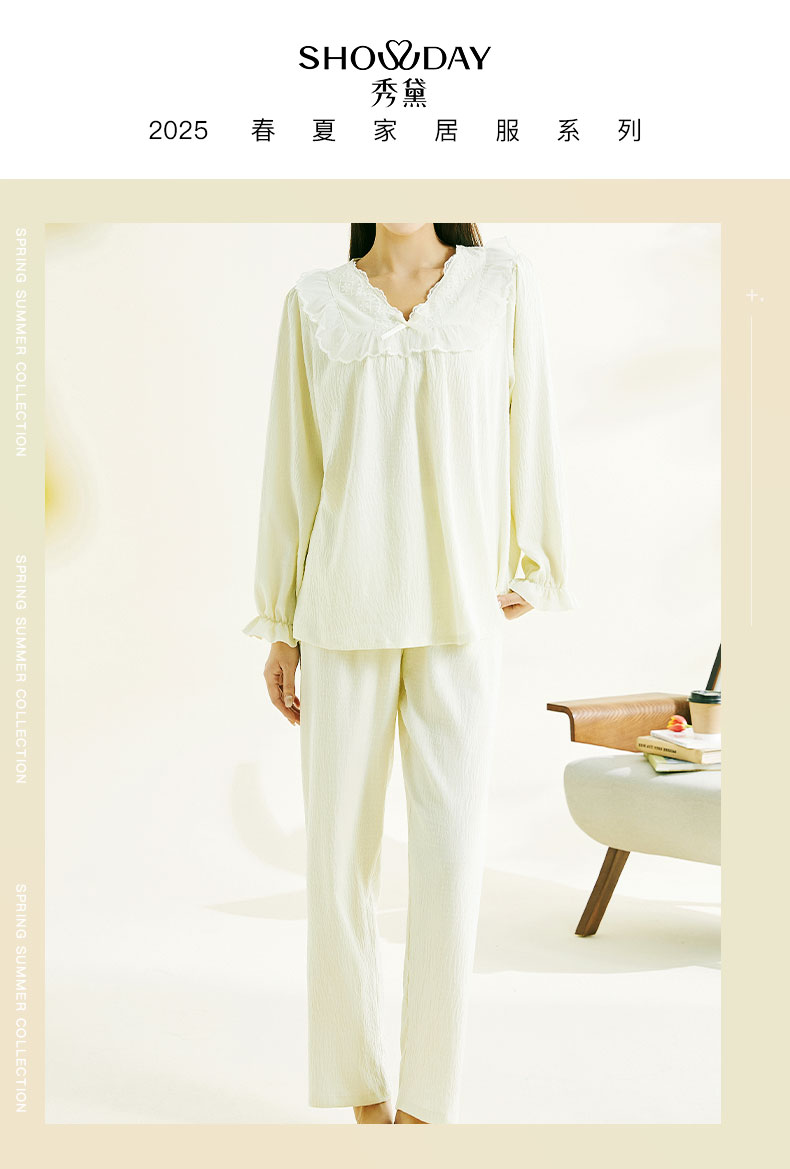 【第二件 0 元| 满2件 5 折】【秀黛】女荷叶边宫廷风长袖套装女春秋长袖家居服睡衣S1551003T【门店同款】