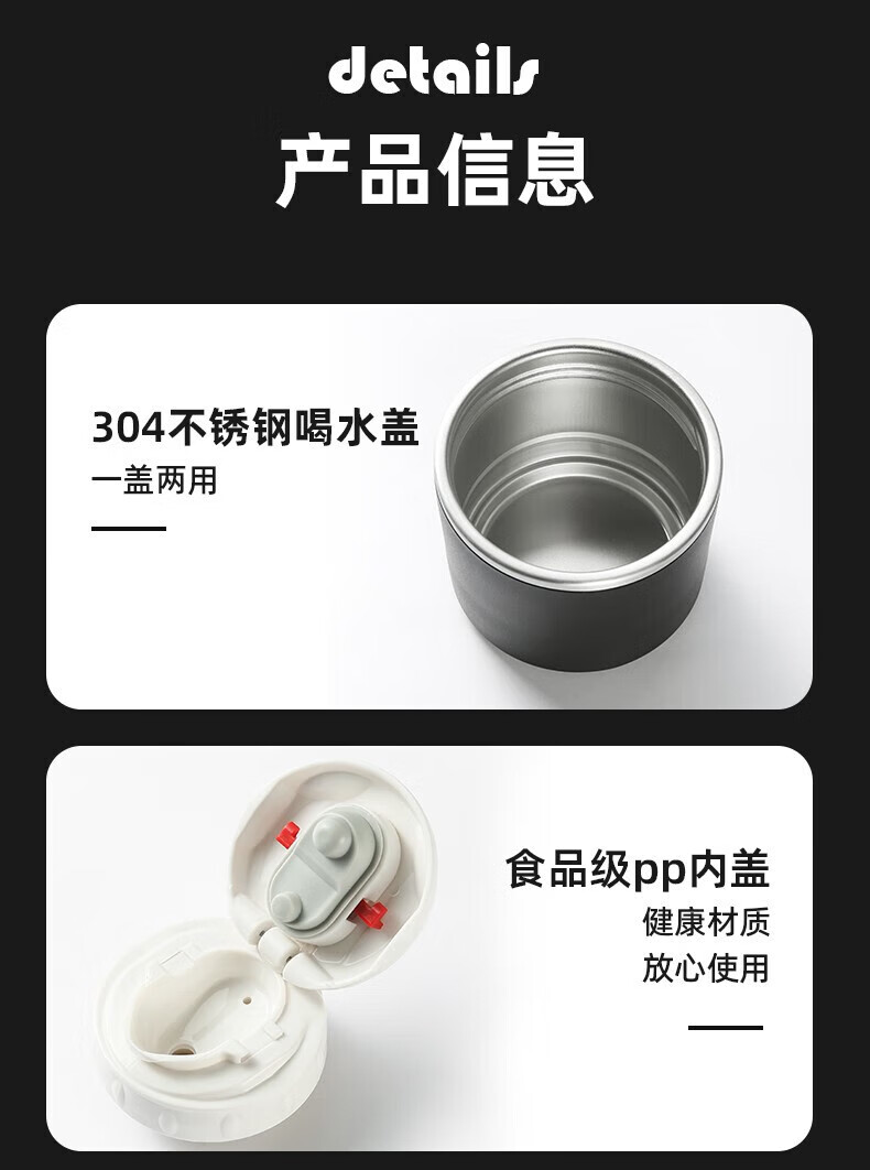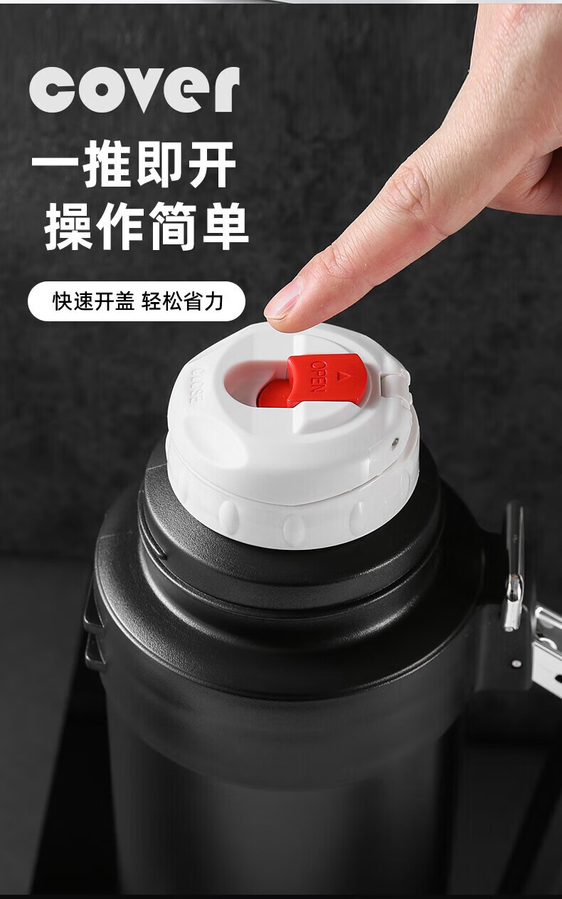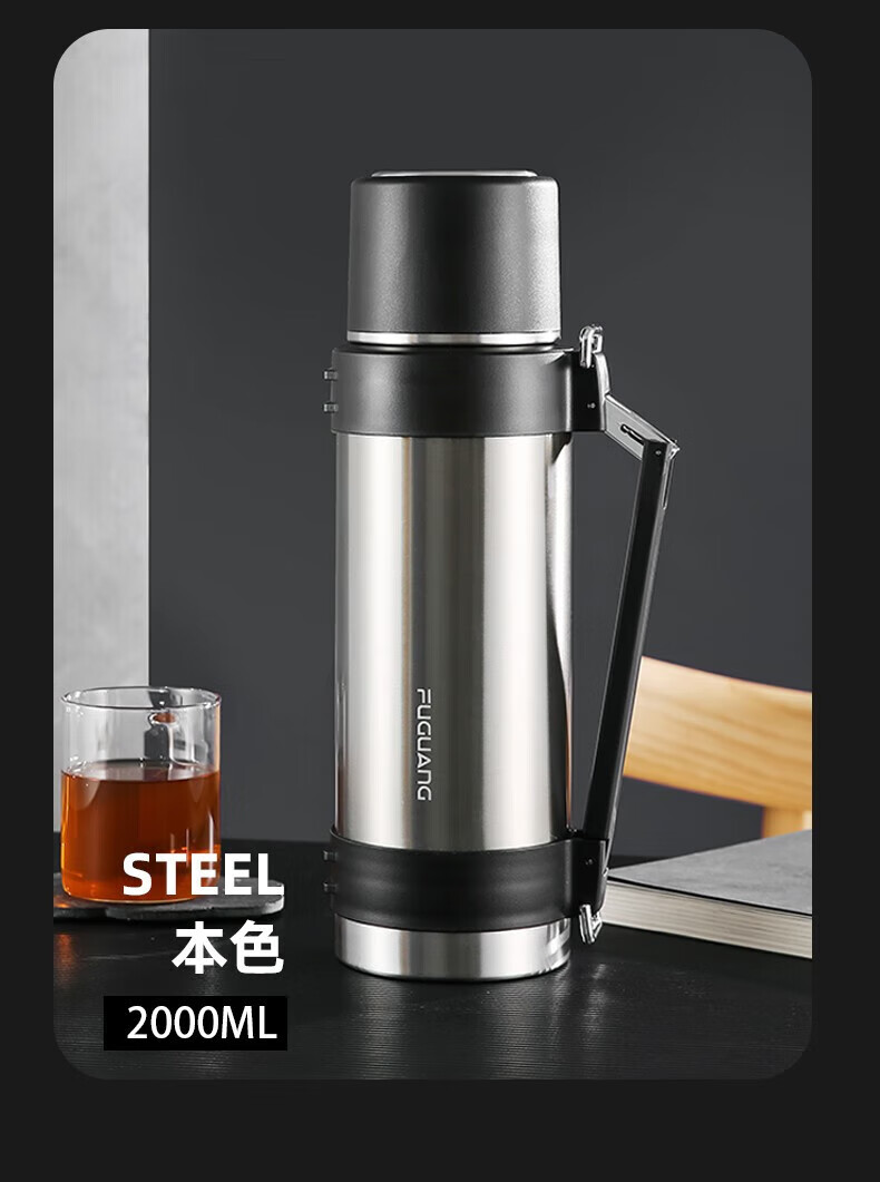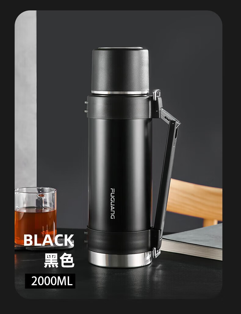 富光保温壶不锈钢大容量保温瓶车载真空保温水壶户外旅行壶暖水瓶 黑色 2000ml