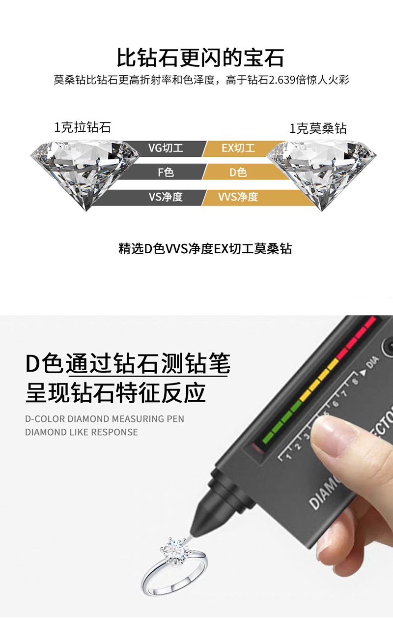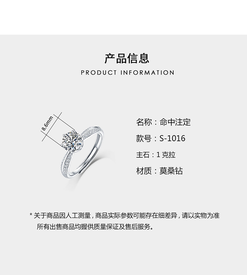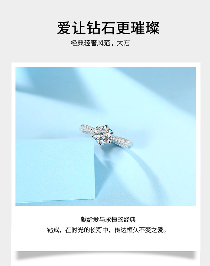 【玖钻】经典莫桑钻 半壁江山戒指1克拉 FX-A-1970-240220