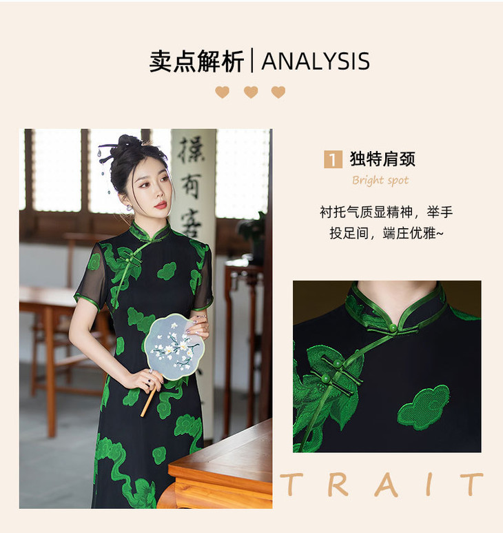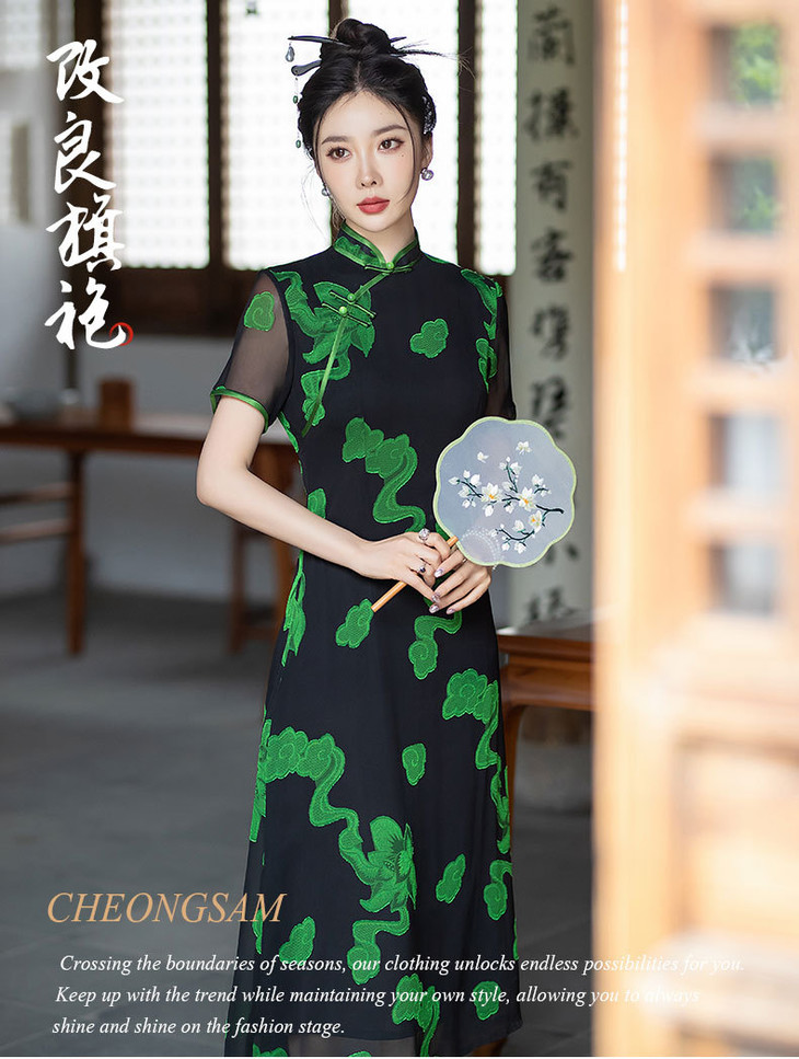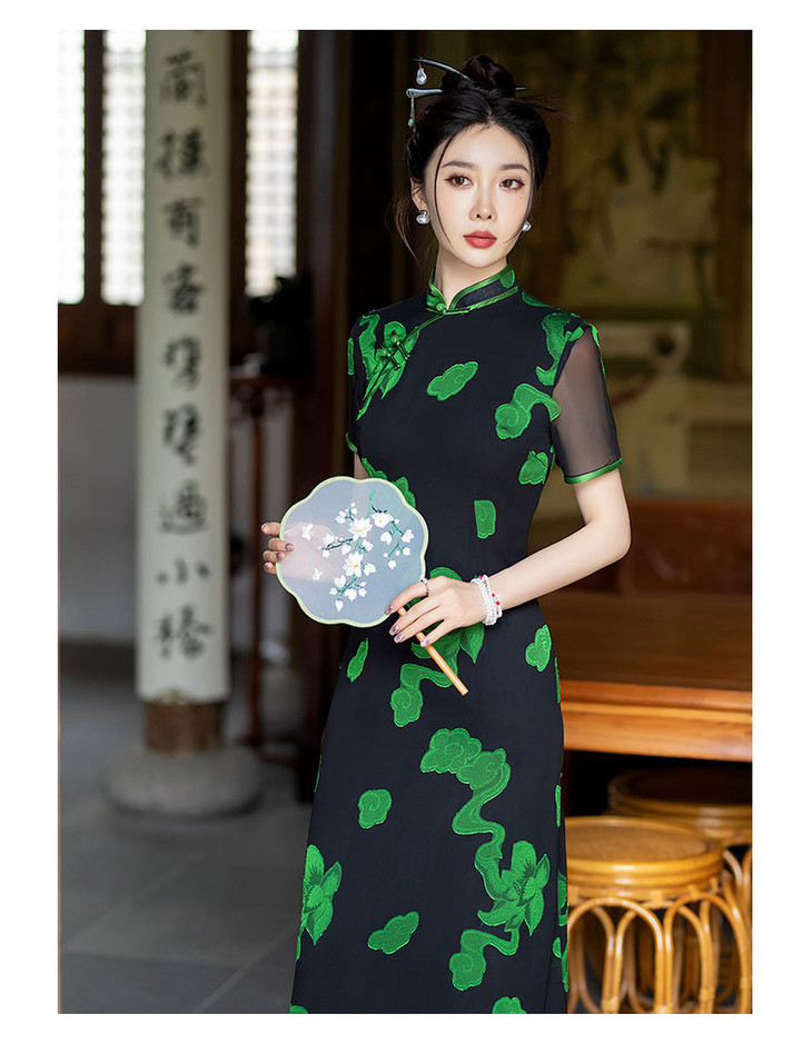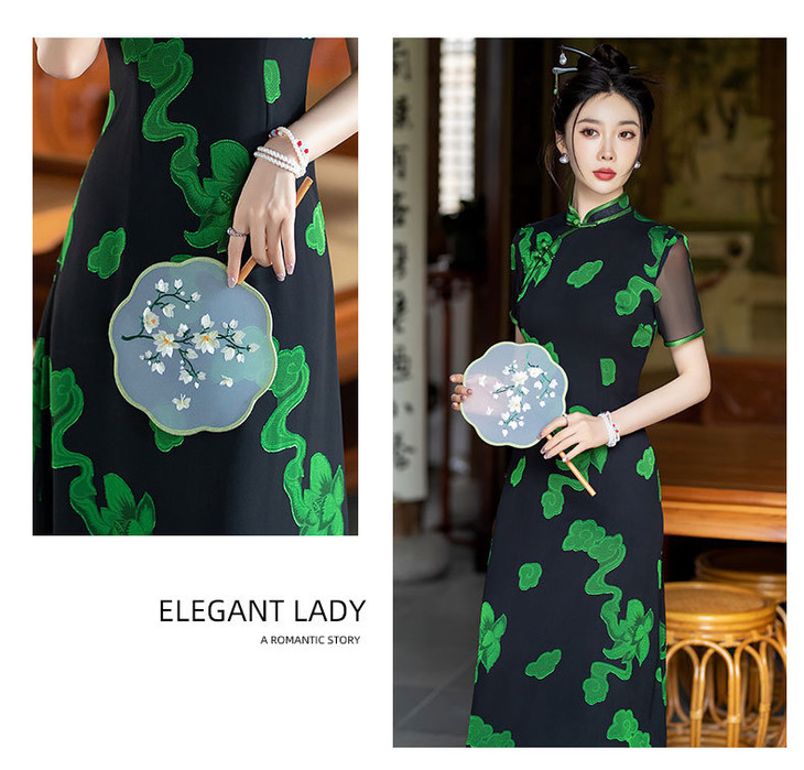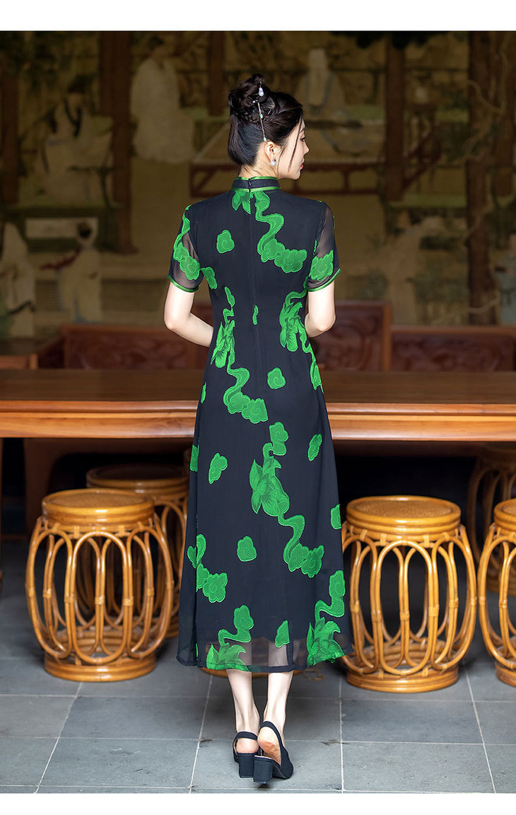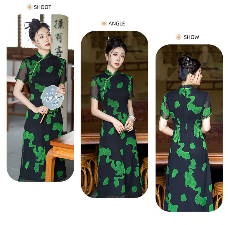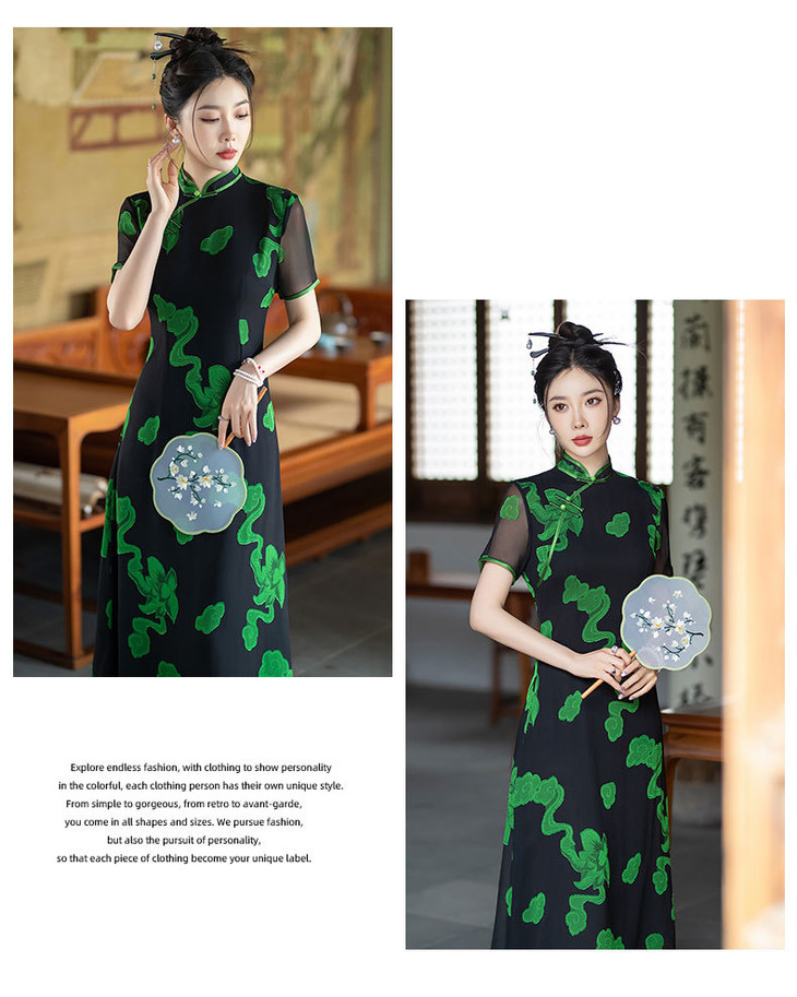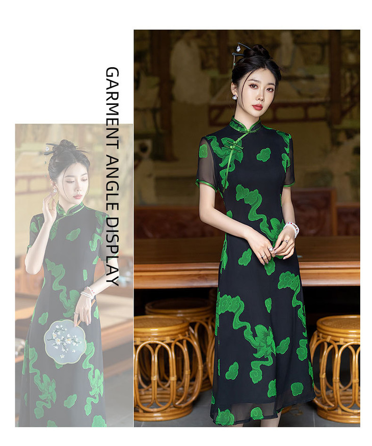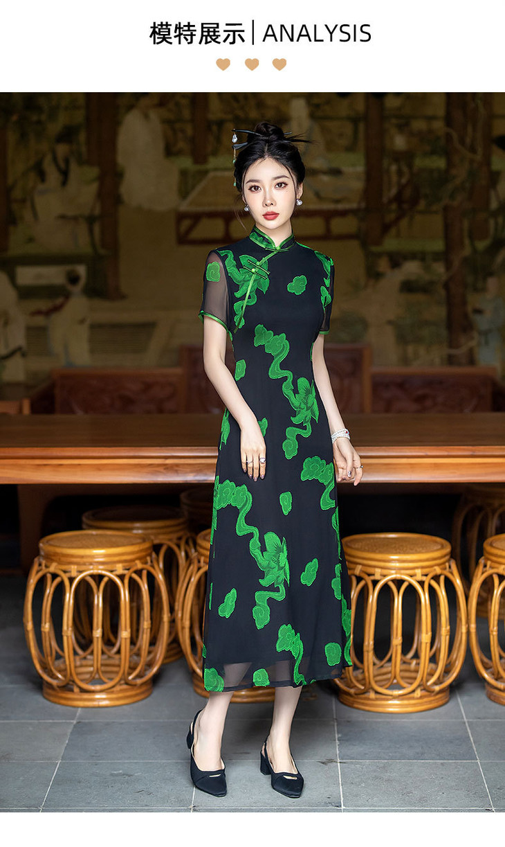 新中式国风改良复古优雅显瘦长款双层旗袍裙SYG849