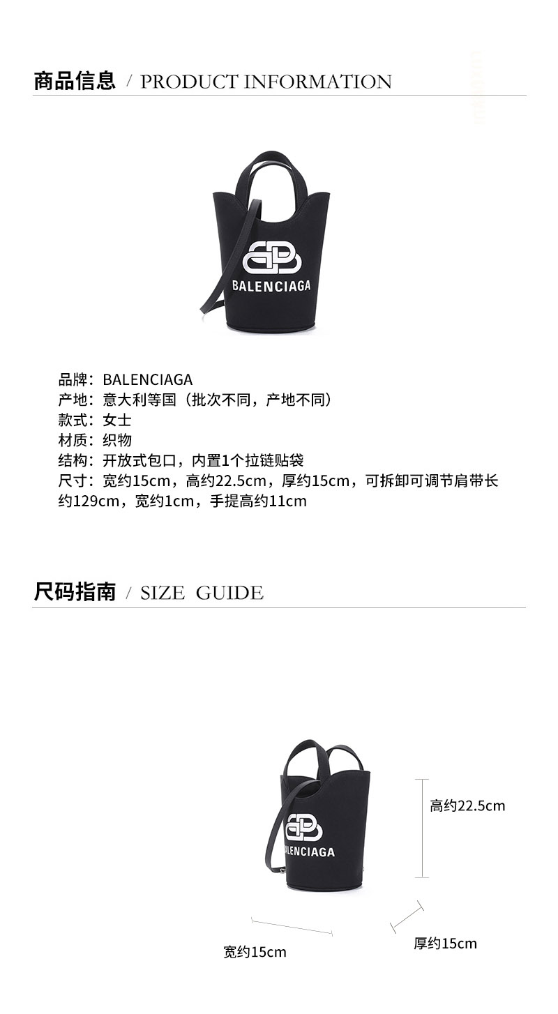 【国内现货】Balenciaga/巴黎世家 2021款 女士XS号织物手提单肩斜挎包水桶包 619979 2HH13