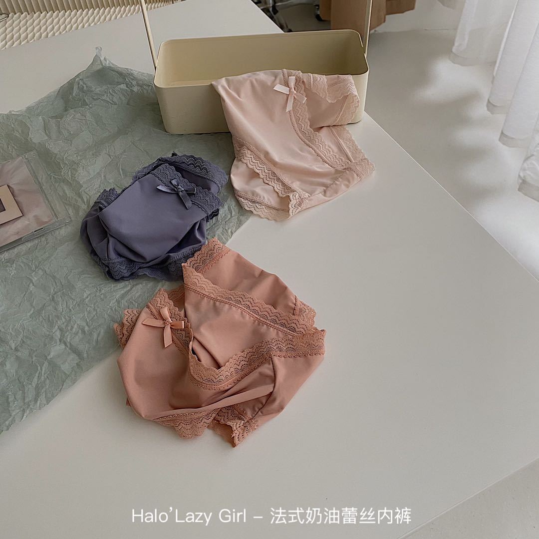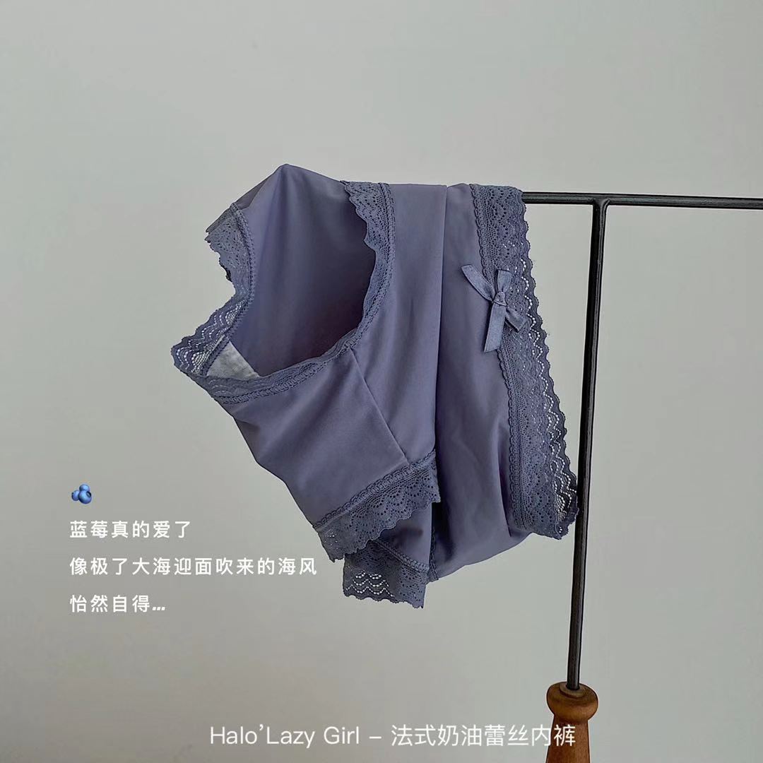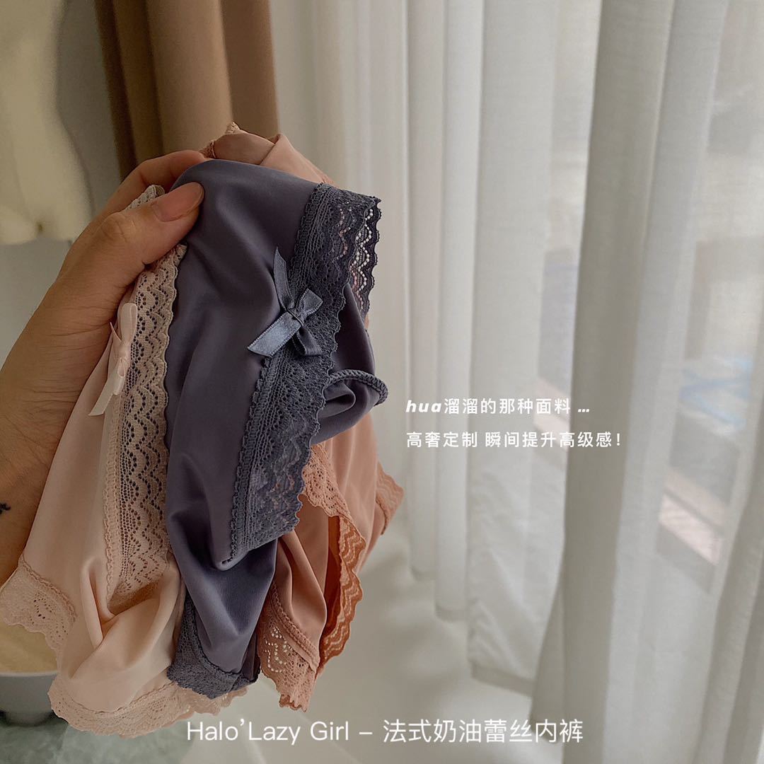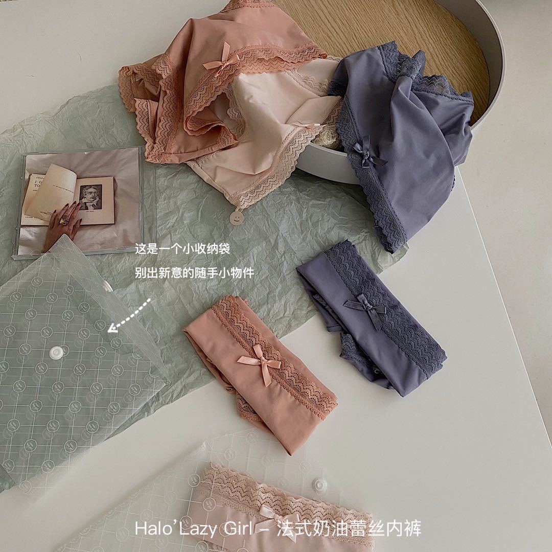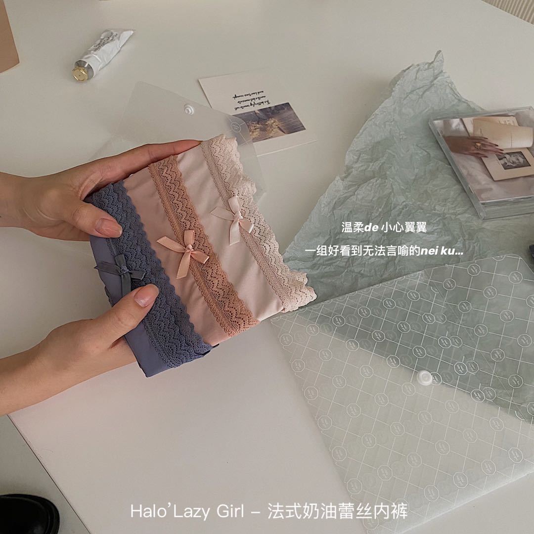 黛唯梵公文袋装法式奶油蕾丝内裤冰丝无痕女 高弹包臀蝴蝶结女士三角裤