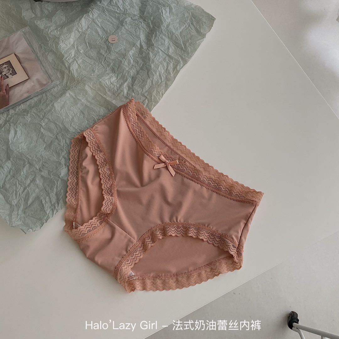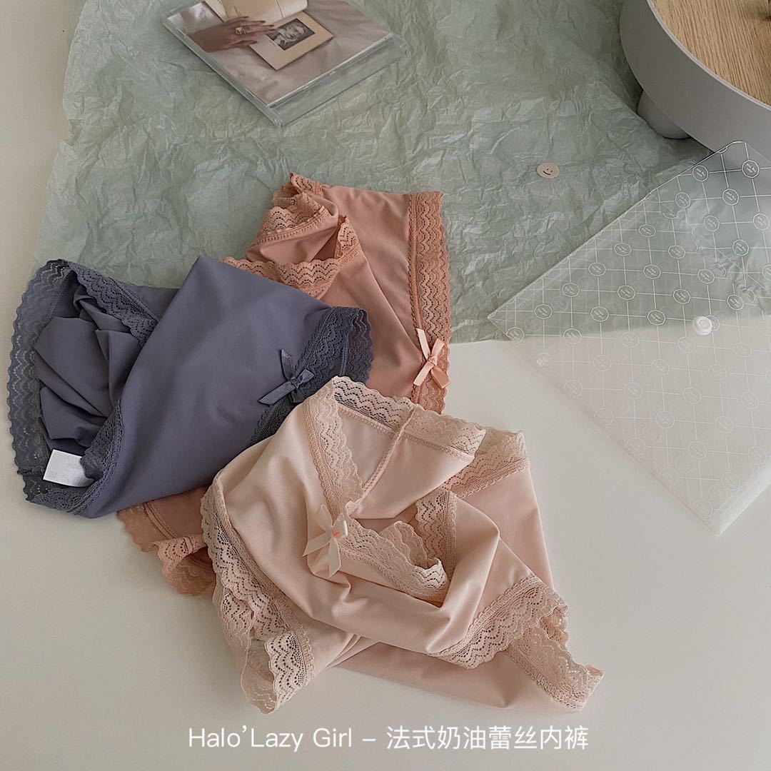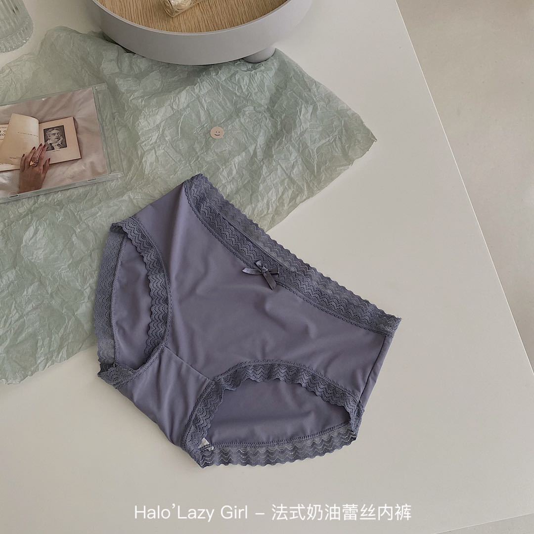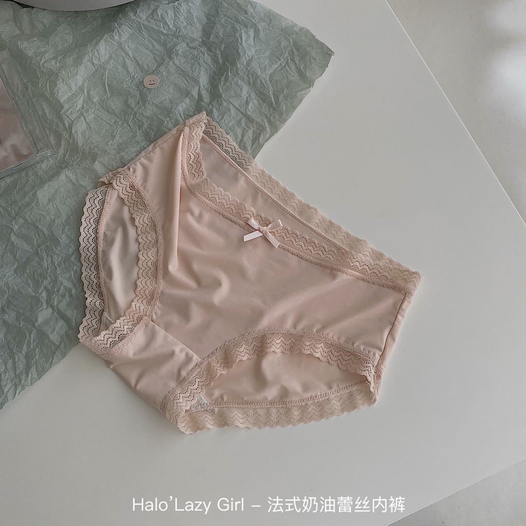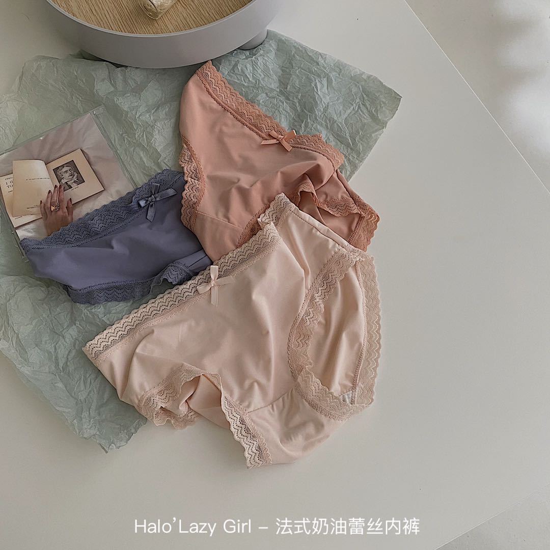 黛唯梵公文袋装法式奶油蕾丝内裤冰丝无痕女 高弹包臀蝴蝶结女士三角裤