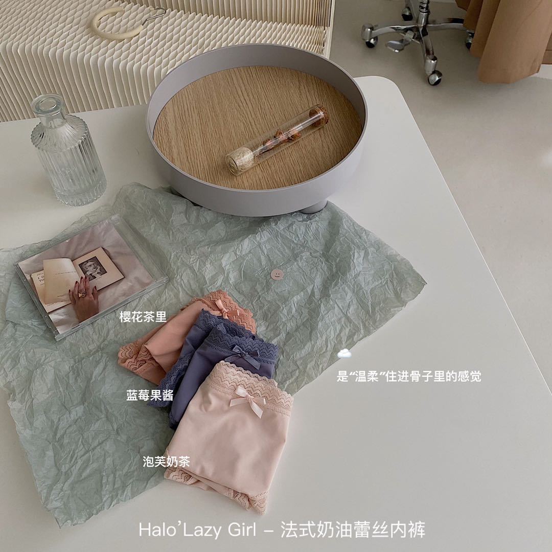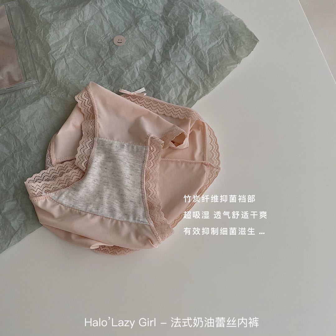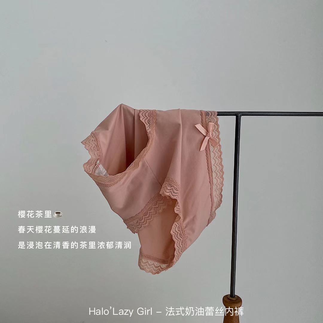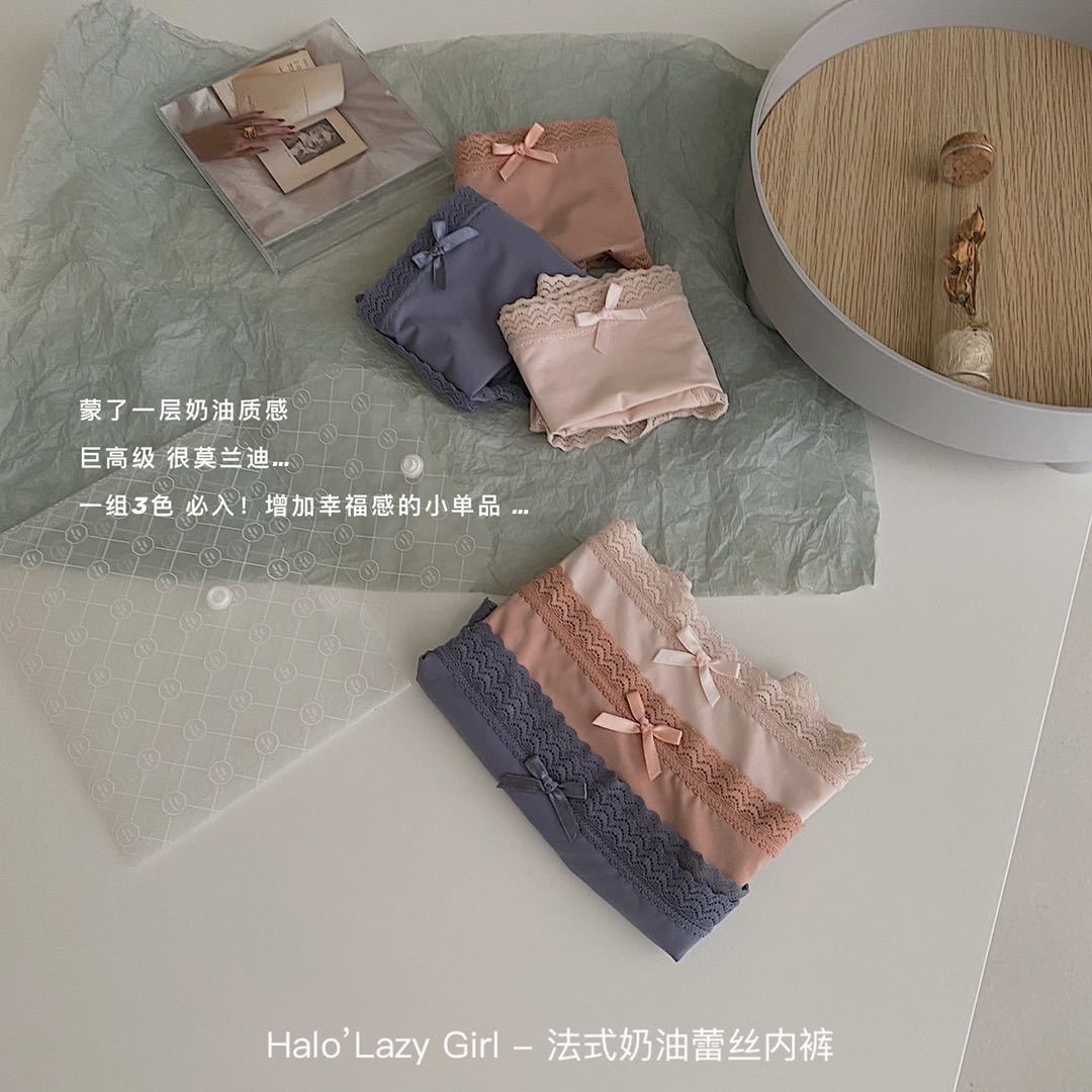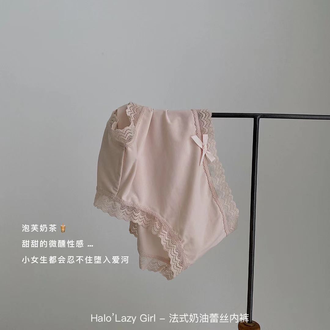 黛唯梵公文袋装法式奶油蕾丝内裤冰丝无痕女 高弹包臀蝴蝶结女士三角裤