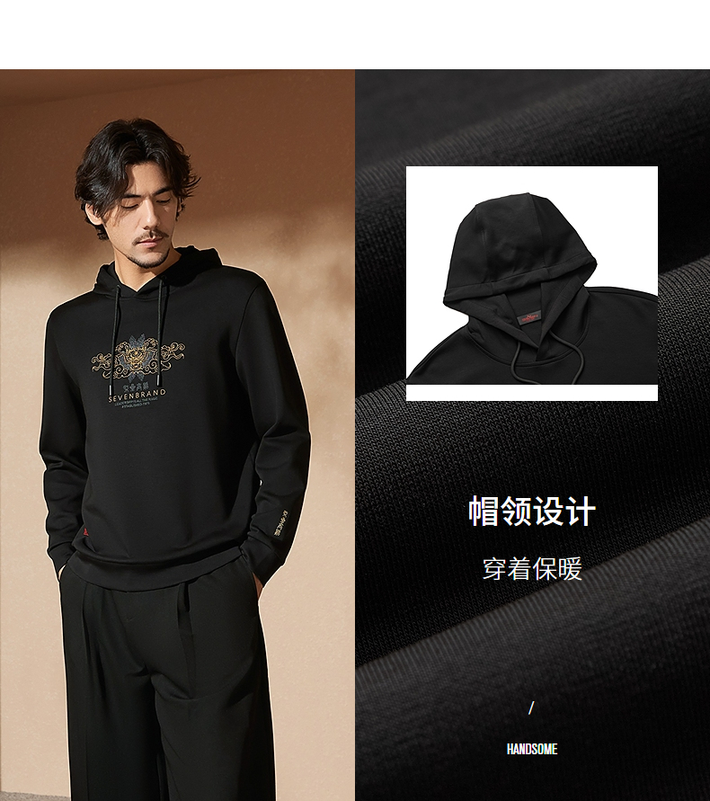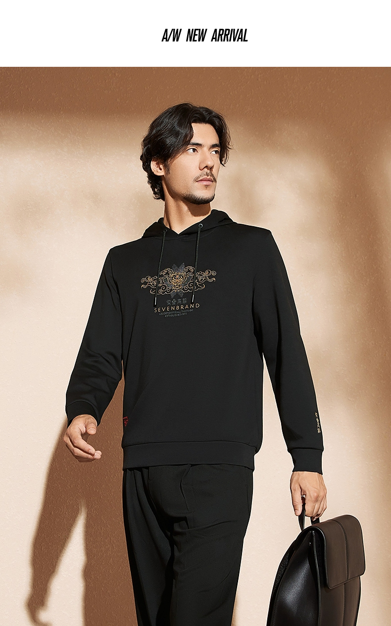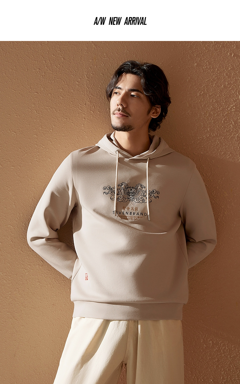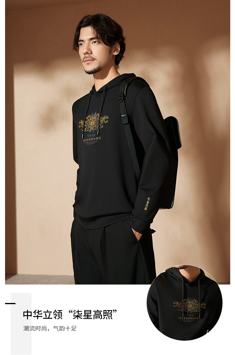 【中华立领】柒牌卫衣男款连帽2024秋季新款时尚潮流休闲套头上衣 127W70700