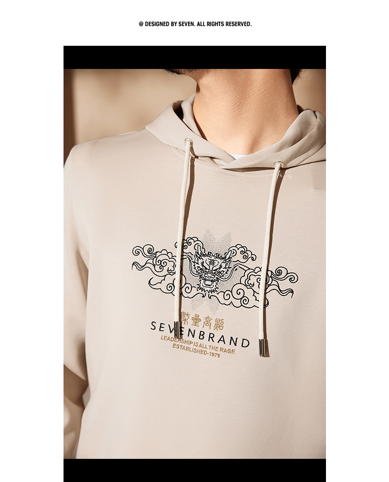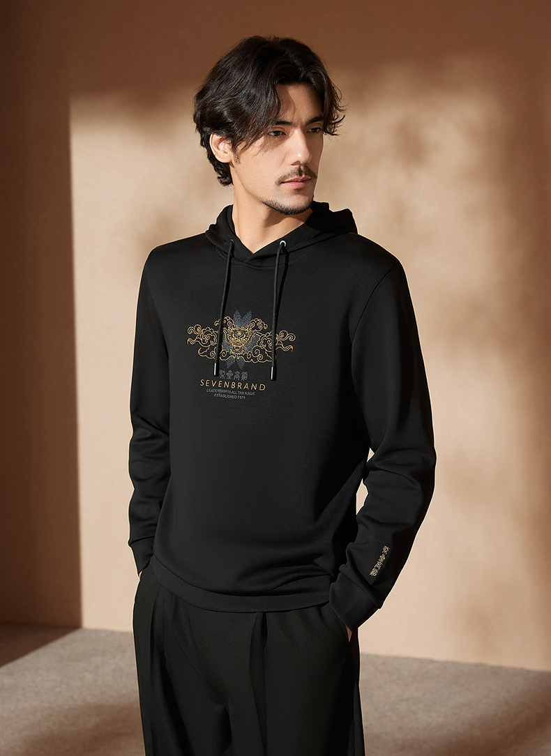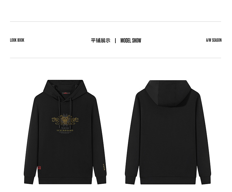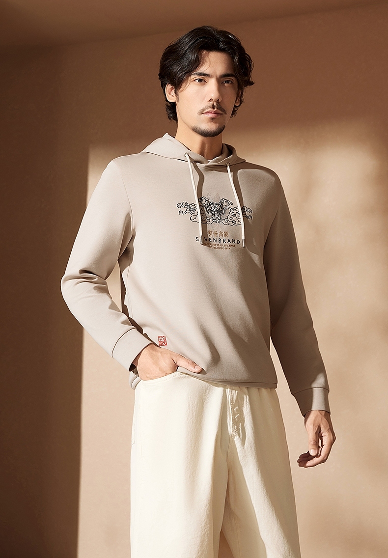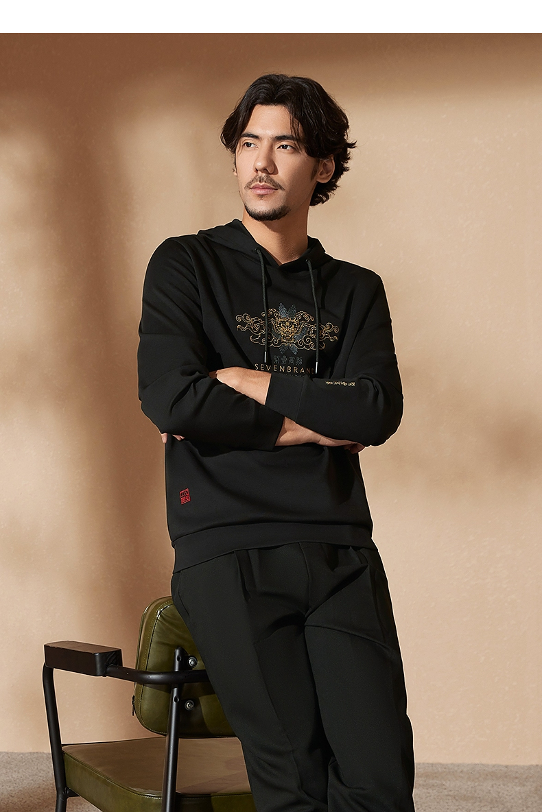 【中华立领】柒牌卫衣男款连帽2024秋季新款时尚潮流休闲套头上衣 127W70700