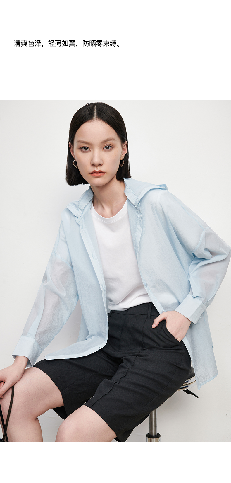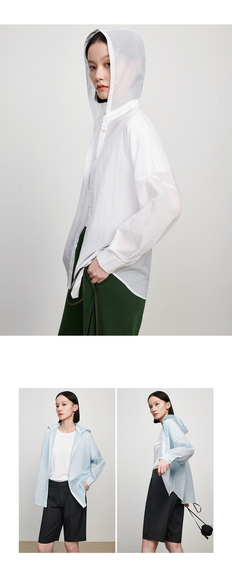 【品牌优选】IN AND ON21433防晒衣女夏季薄款防紫外线透气衬衫连帽落肩袖外套