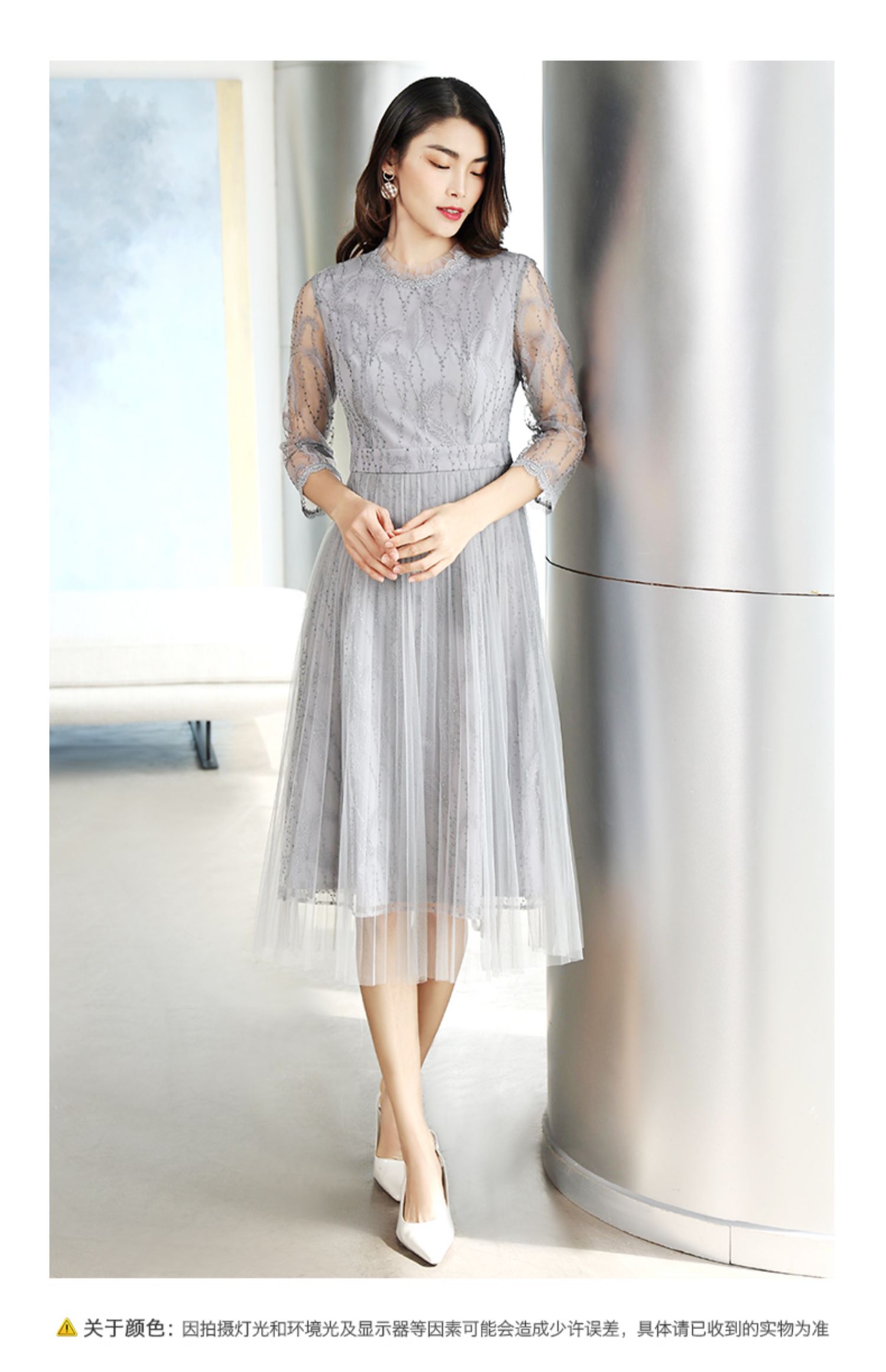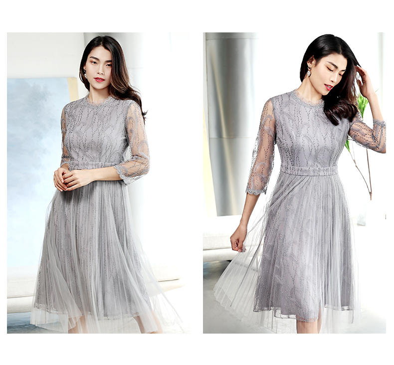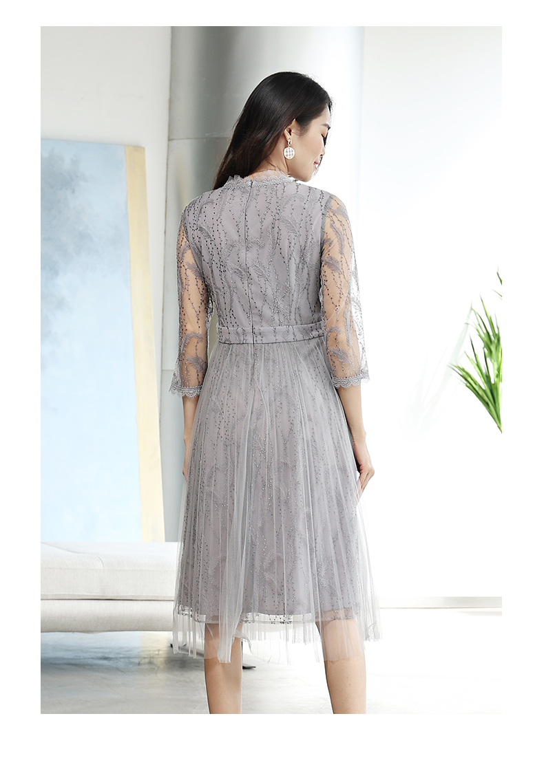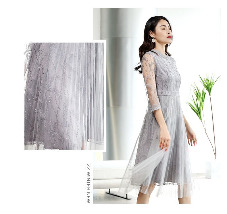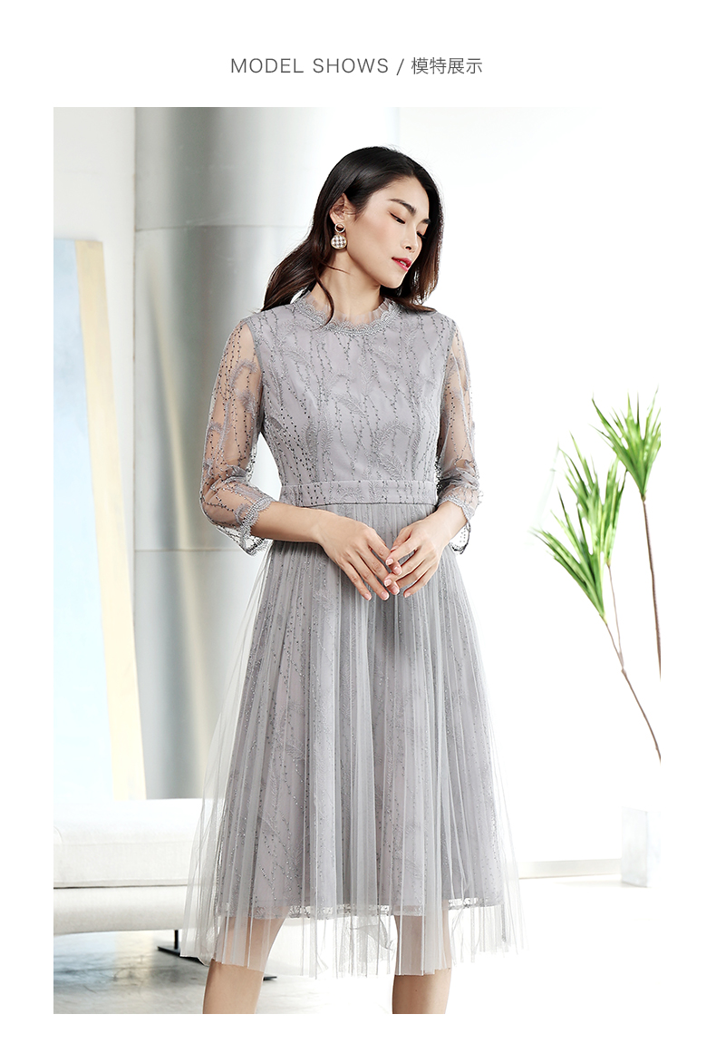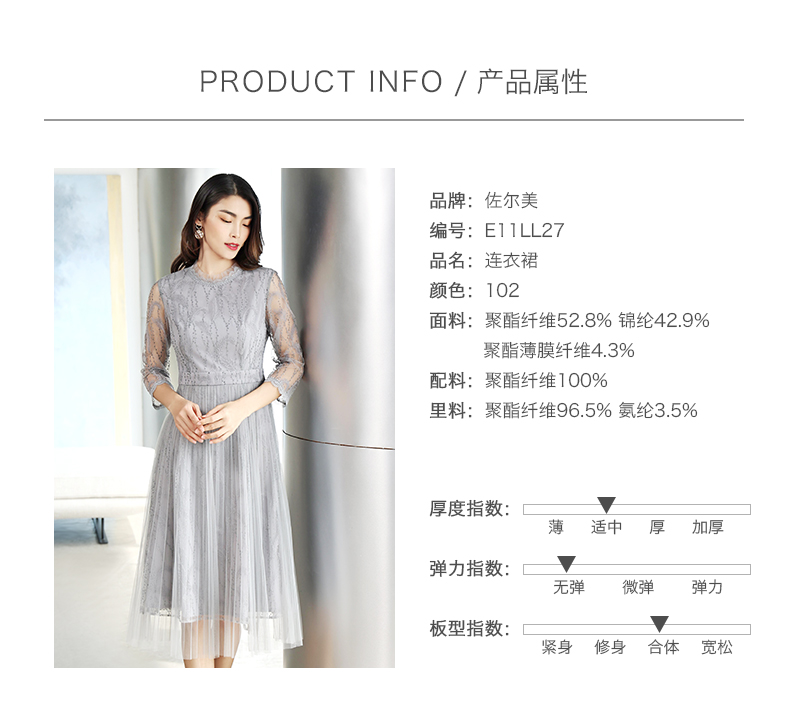 佐尔美商场同款气质春秋蕾丝中袖收腰显瘦中长连衣裙E11LL27