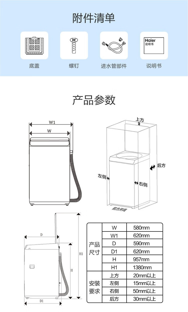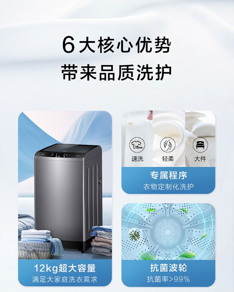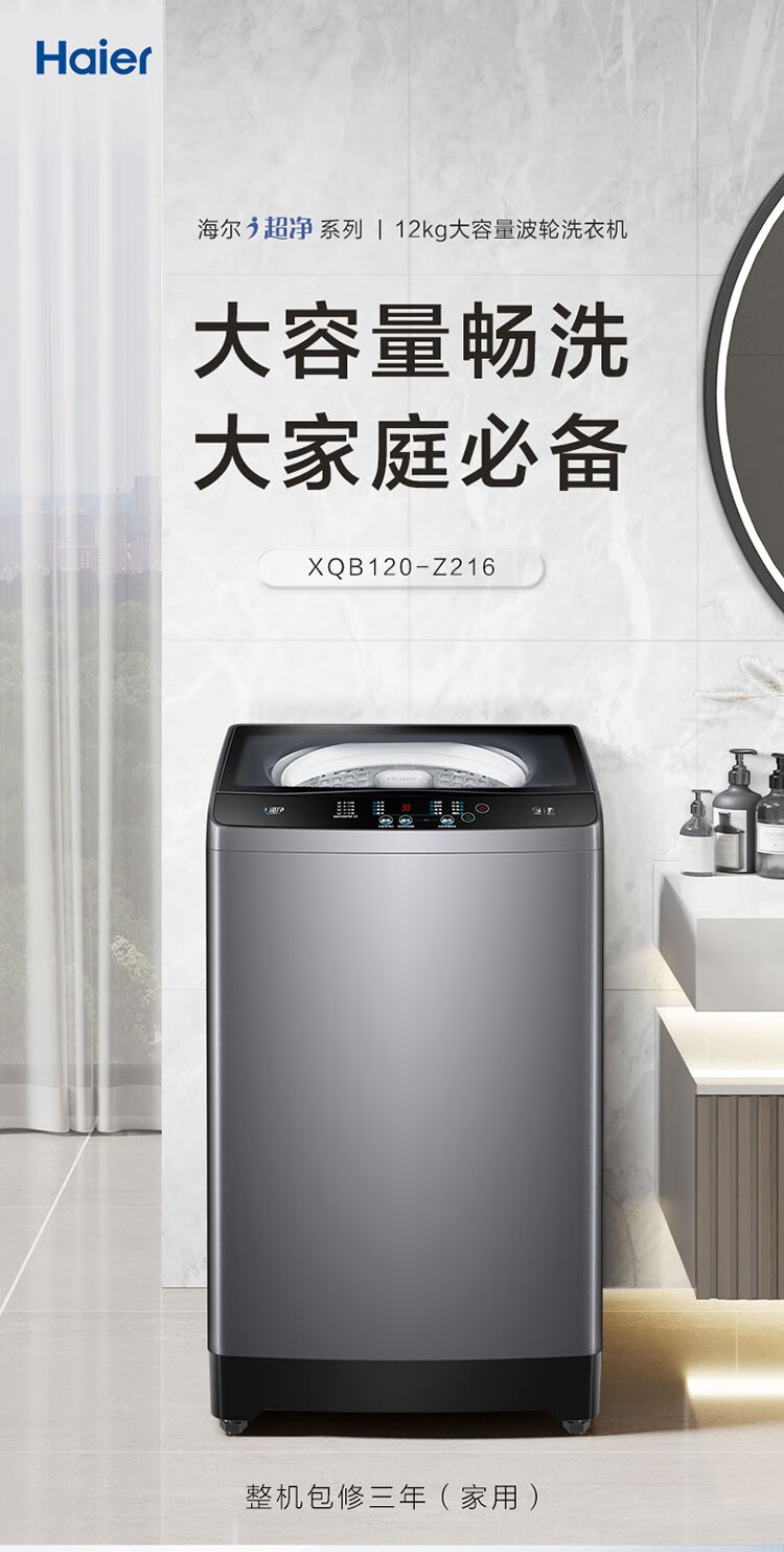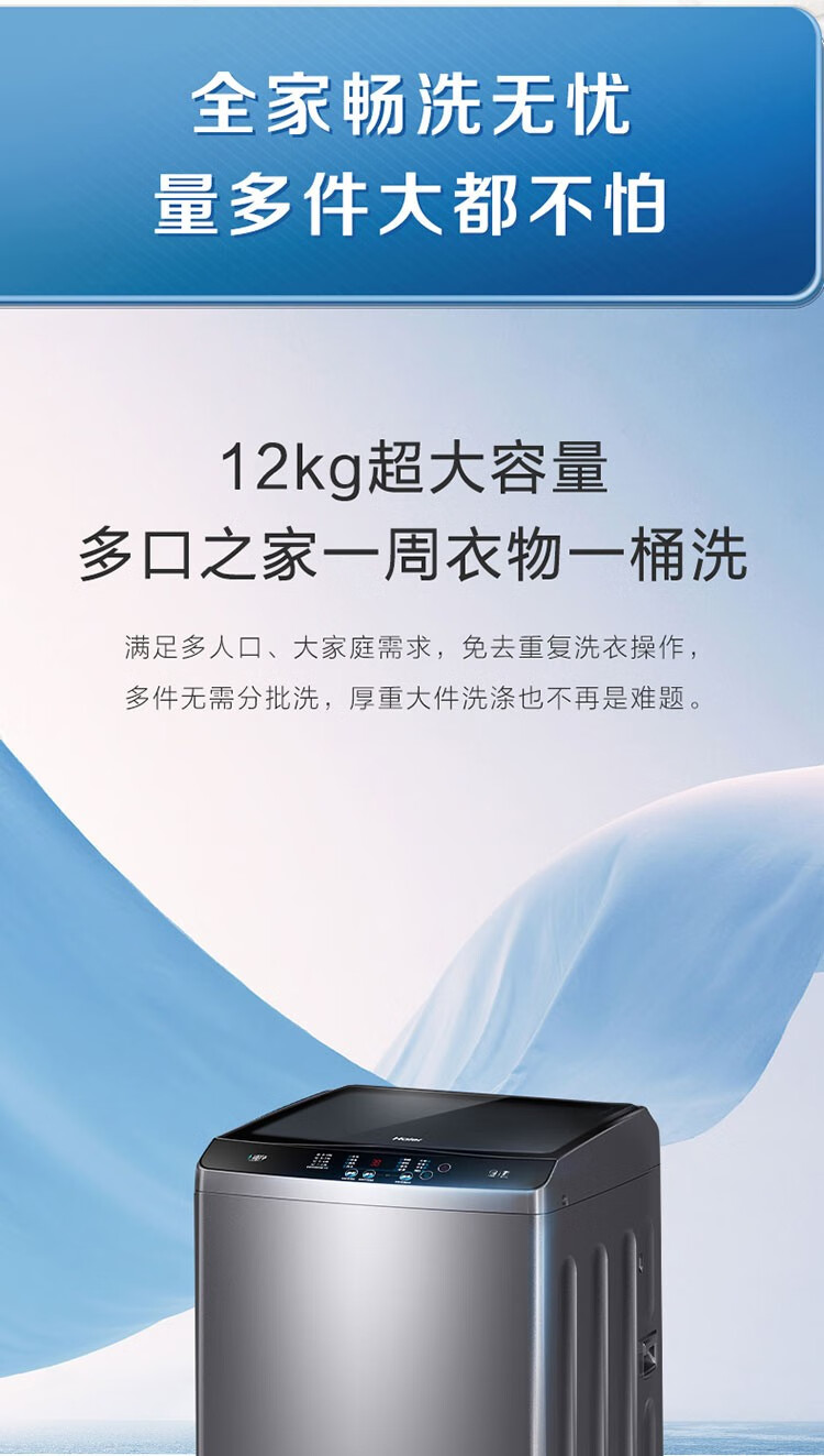 海尔(Haier)波轮洗衣机全自动 12公斤大容量超净洗 大件强力洗 一键桶自洁 羊毛呵护洗