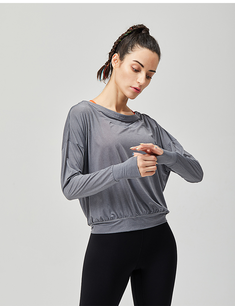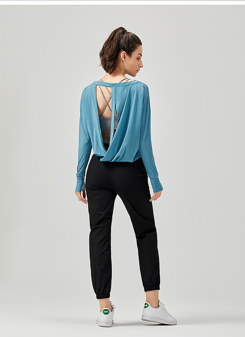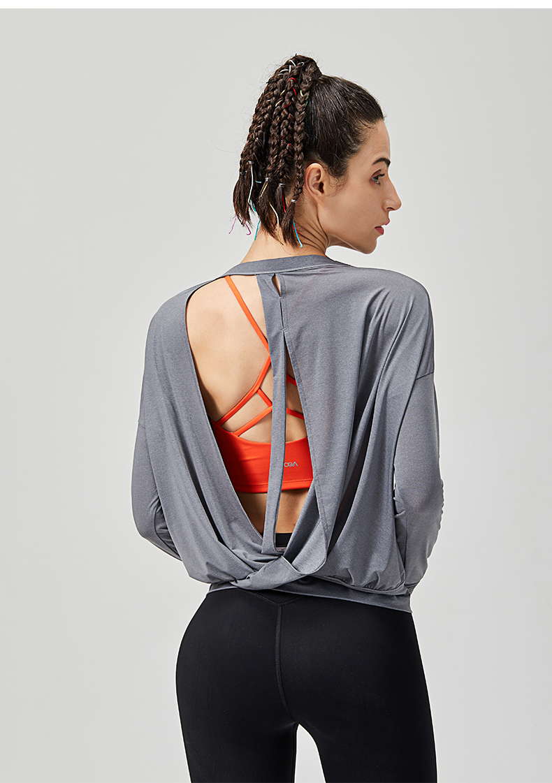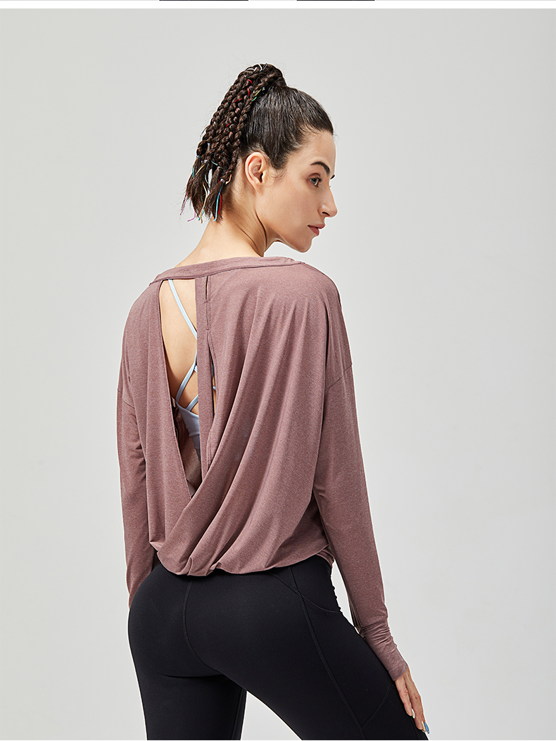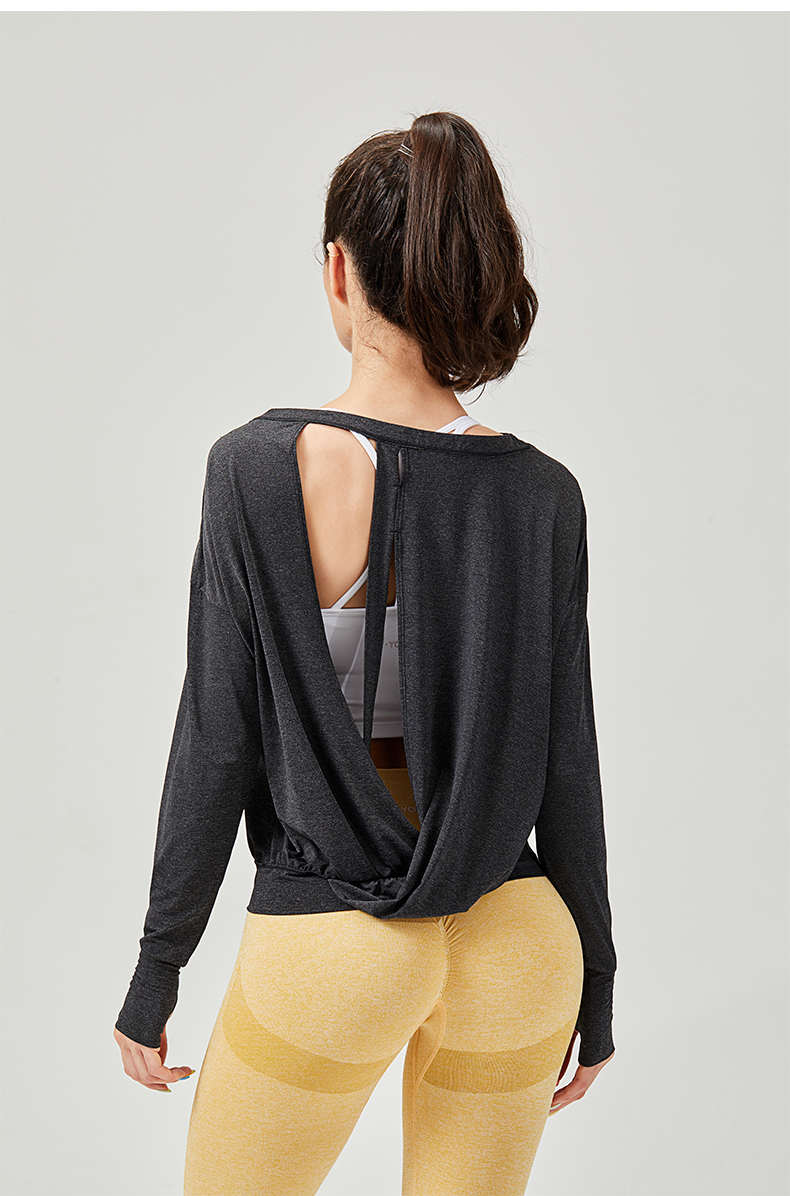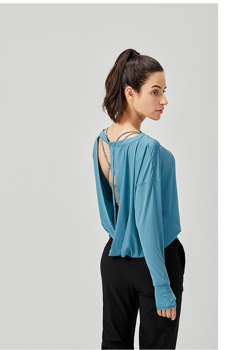 IYOGA长袖罩衫时尚外搭性感露背套指设计显瘦凸显气质轻薄透气宽松版型T044