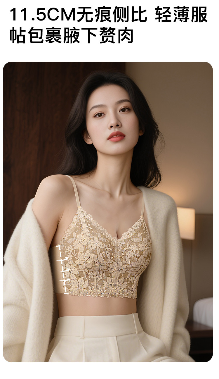 花蕾卿卿 舒适文胸(VIP)【法式浪漫】小胸聚拢细肩带性感内搭背心式文胸