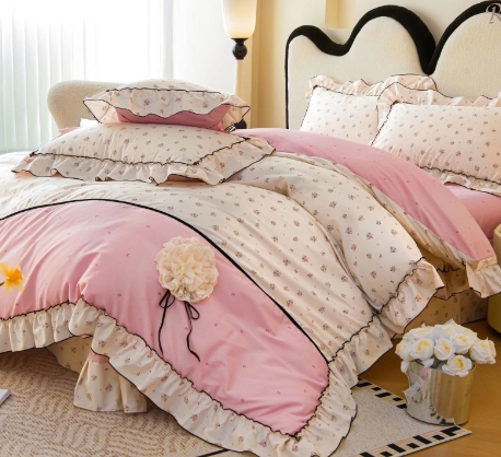 韩式公主风全棉荷叶边清新小碎花欧诗漫四件套G117800032