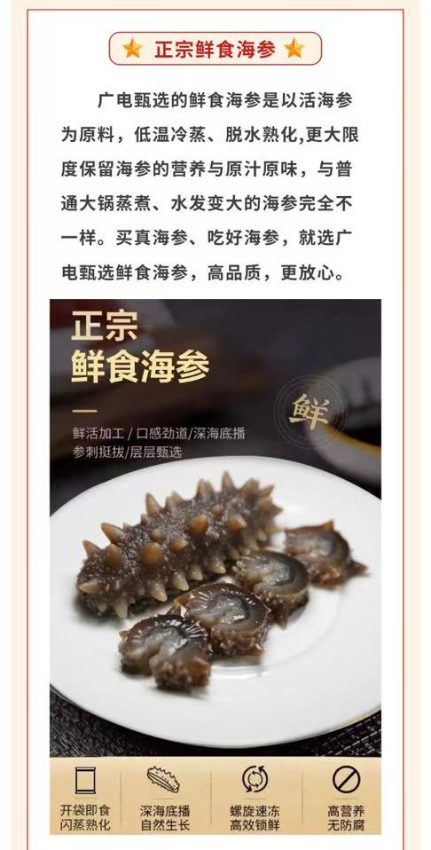【山东音乐广播专属定制】年底大促 正宗渤海湾秋捕头茬鲜食海参 无需泡发开袋即食