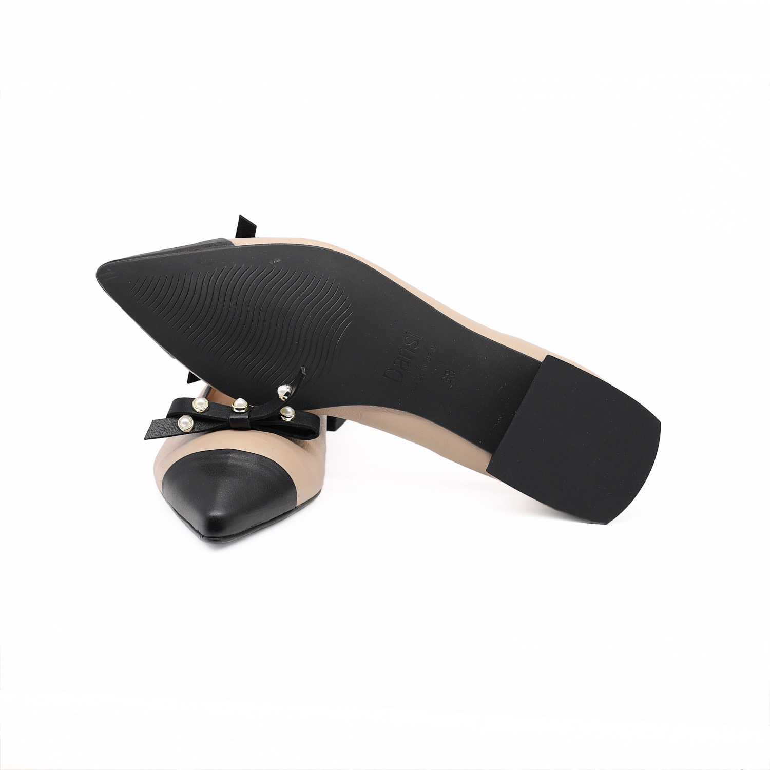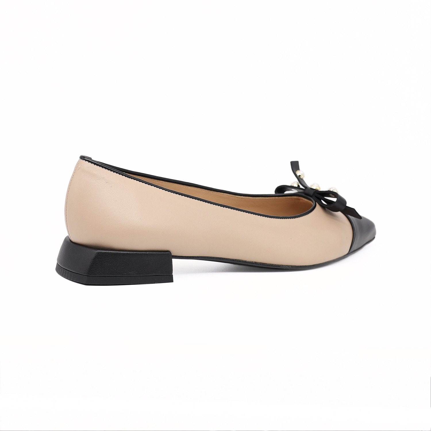 鞋面黑色蝴蝶结装饰,蝴蝶结上点缀小珠饰,更显精致。