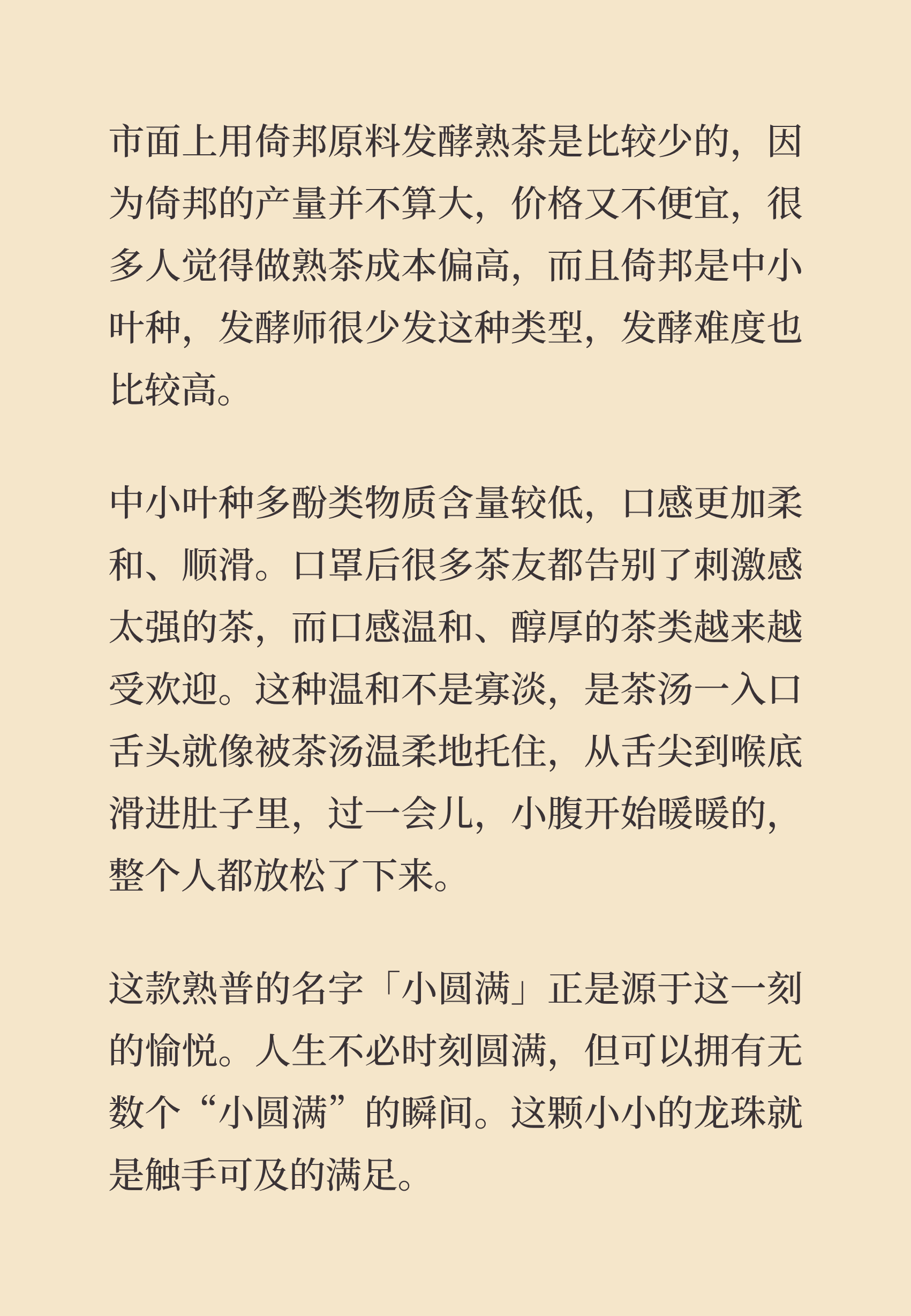 普洱熟茶「小圆满」顺滑到心里 倚邦乔木大树原料 2025年发酵 这一颗 这一刻 口腔被温润包裹 喉咙泛起清凉 就是属于你的小圆满