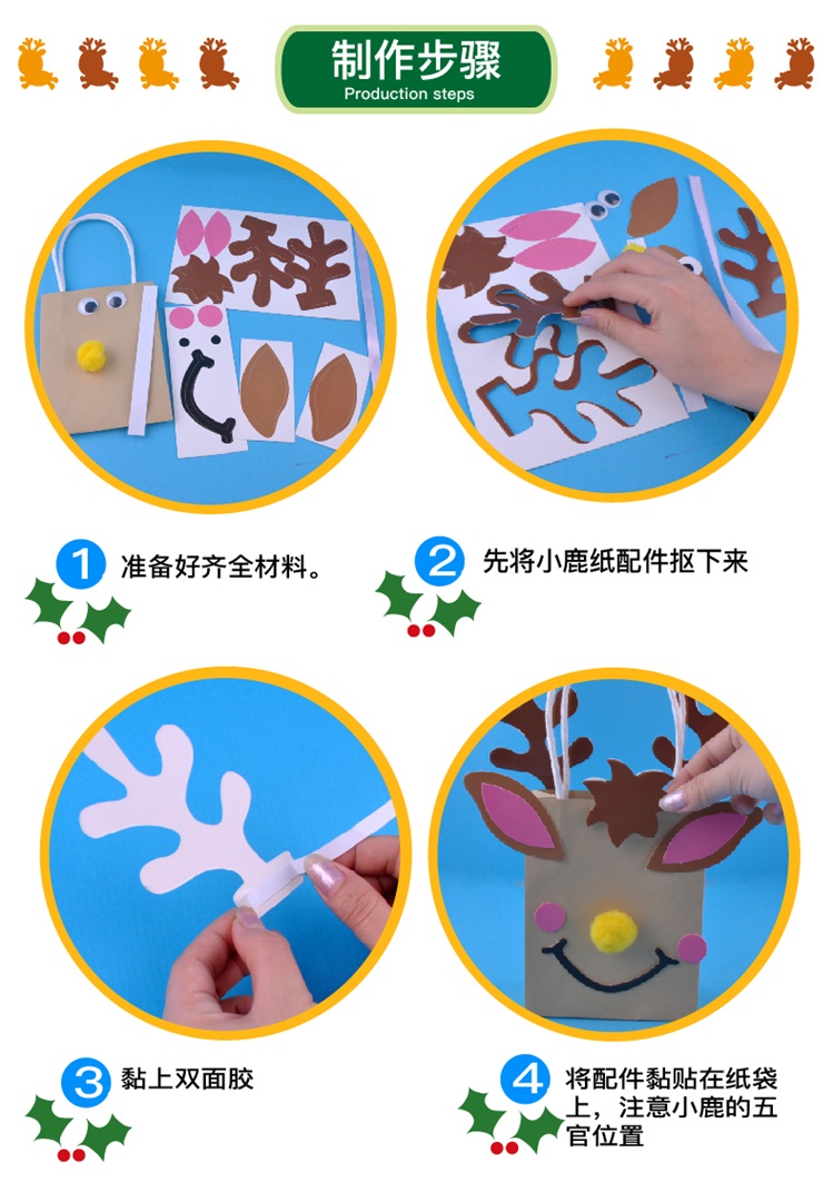 小鹿纸袋 动物礼物袋幼儿创意手工美可diy 儿童节益智精品 热卖