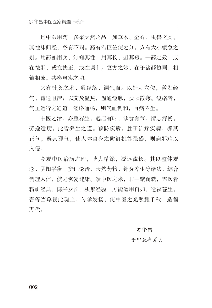 本书是罗华昌医生三十余年中医临床实践的精华集萃。该书系统整理了罗医生在各类疾病治疗中的验案,涵盖发热汗出、喘咳、胸痹、脾胃病、失眠、眩晕、五官疾病、腰痛、痹证、妇科疾病、男科问题以及徵瘕积聚等多个领域,共计100余例典型医案。每个医案都详细记录了治疗过程、用药经验及治疗效果,充分展现了罗华昌医生深厚的中医理论基础和独特的用药特色。此书不仅为中医专业人士提供了宝贵的临床经验,也为广大患者提供了治疗疾病的中医视角和参考。