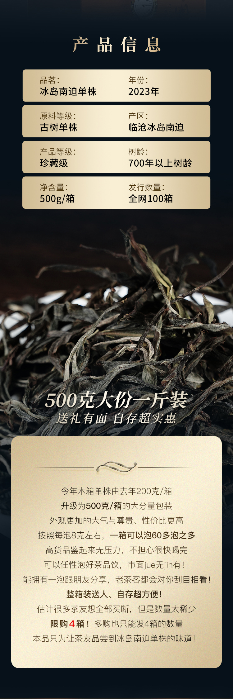 春茶预售【冰岛南迫单株】茶农联合出品保证每一片叶子都来自核心产区每箱净含量:500克,送礼收藏更具价值