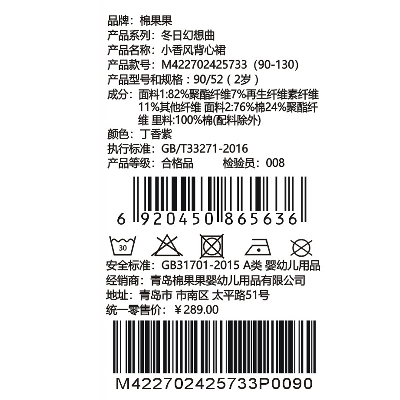 | 裙长 | 49 | 53 | 57 | 61.5 | 66 |