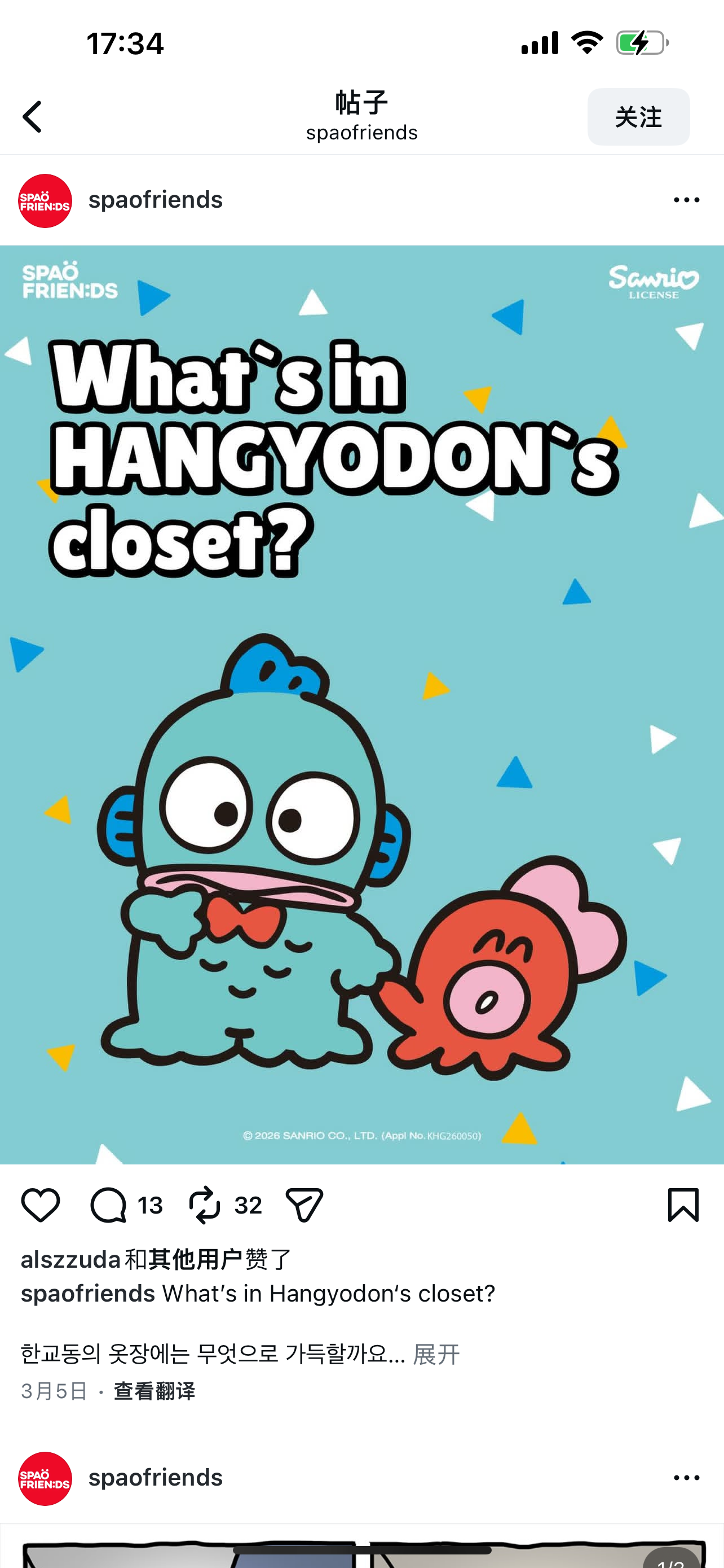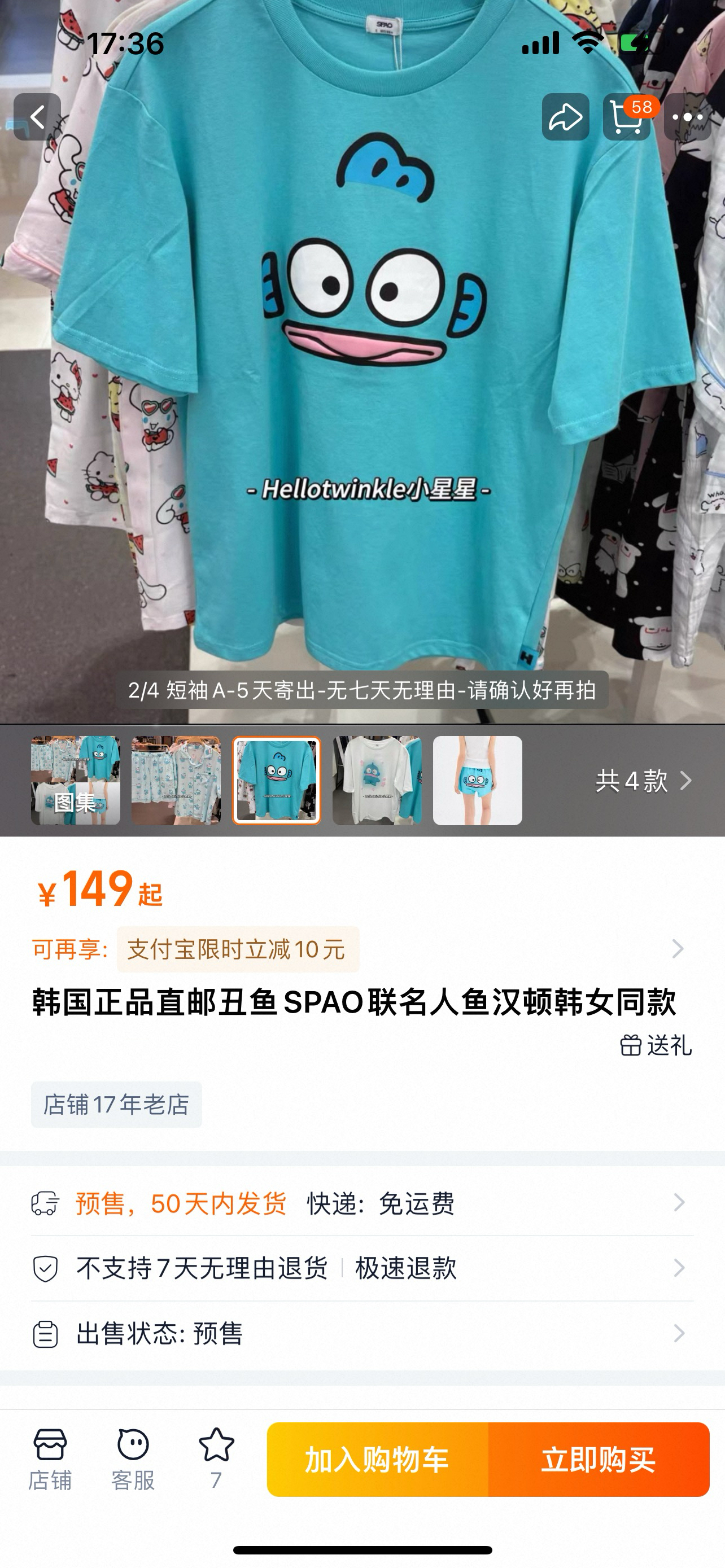 自留!太可爱了!韩国sp* x 三丽鸥 联名合作款原d,男女同款,小丑鱼汉顿 舒爽 凉感棉 卡通 棉质 短袖~