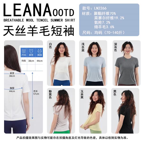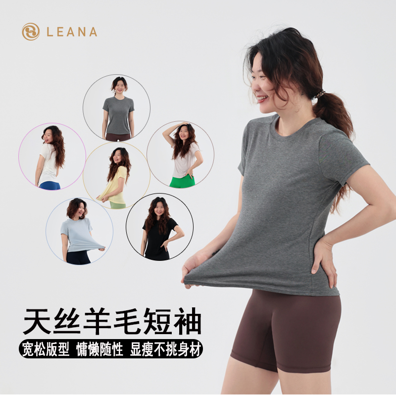 【买一赠一】LEANA(天丝羊毛短袖)莱赛尔天丝透气不闷热短款宽松慵懒风打底衫上衣短袖LN2266